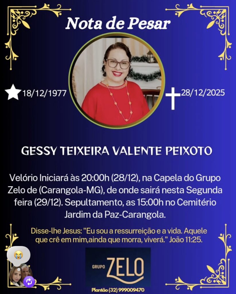 Nossos mais sinceros sentimentos aos familiares e amigos! Equipe Carangola Notícias