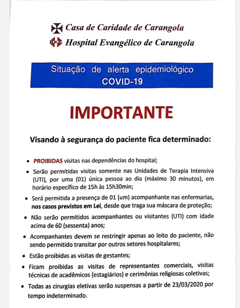BOLETIM INFORMATIVODIÁRIO DATA: 19/03/2020 Até o momento, existem 3 (três) casos suspeitos em Carangola, sendo 1 (um) sob investigação e 2 em isolamento domiciliar aguardando coleta para infecção pelo COVID-19. A partir de 19/03/2020 o Município recebeu a informação da SES – MG que os casos suspeitos em isolamento domiciliar serão coletadas amostra para análise. […]