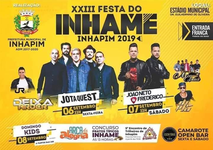 FESTA DO INHAME EM INHAPIM TRAZ JOTA QUEST E JOÃO NETO E FREDERICO – DE 06 A 08 DE SETEMBRO