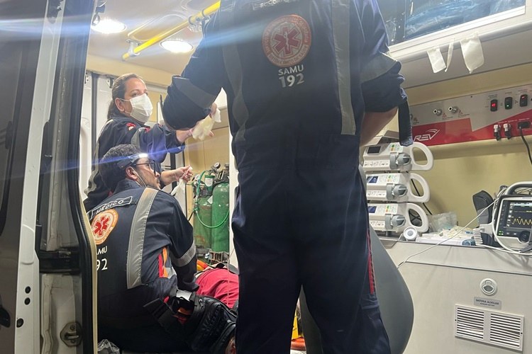 Com a queda idoso bateu o rosto no asfalto e sangrava muito pelo ouvido, ainda no local recebeu os primeiros atendimentos.