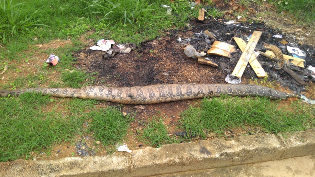 Sob a justificativa de que a cobra oferecia risco de ataque a moradores e transeuntes, alguns populares mataram o animal. Vale ressaltar que a providência correta nestes casos é acionar o órgão responsável, neste caso, a Polícia Militar de Meio Ambiente, a fim de que se evite crimes ambientais.