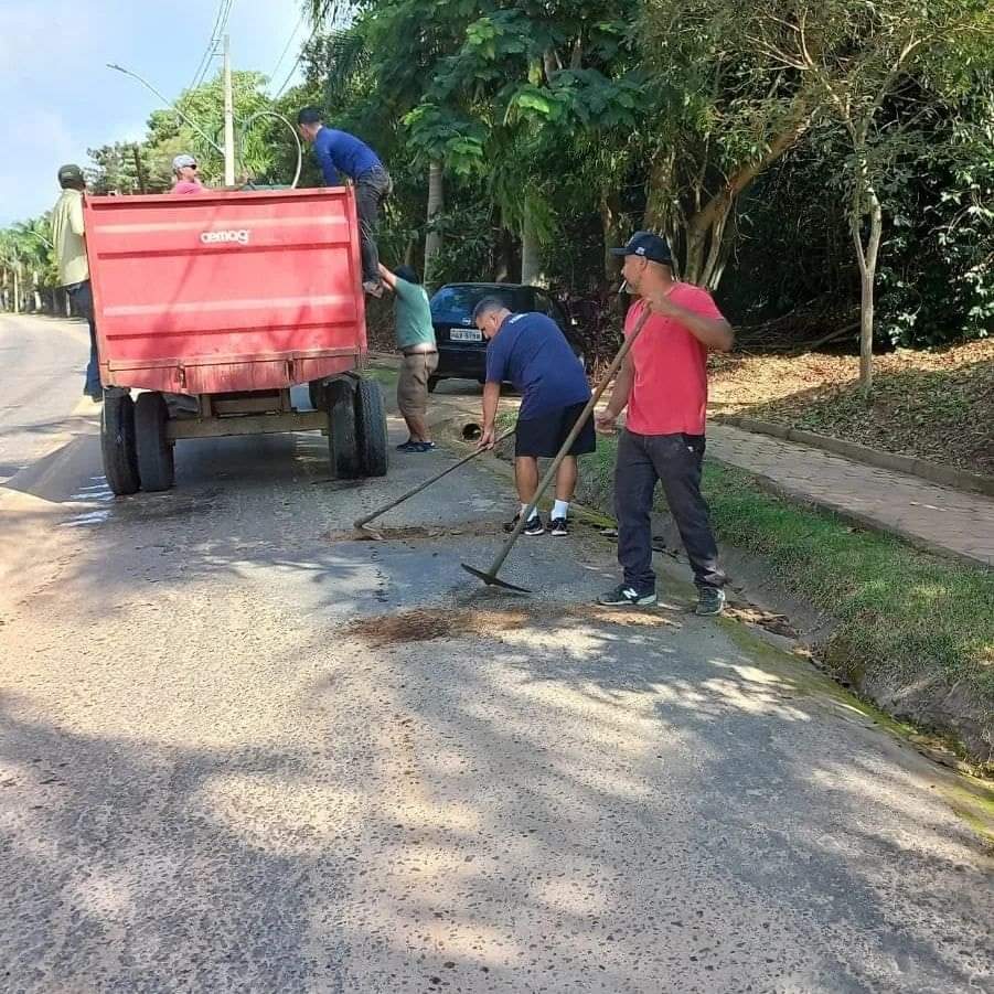 O GTAC se mobilizou e colocou cimento nos buracos no meio do asfalto.