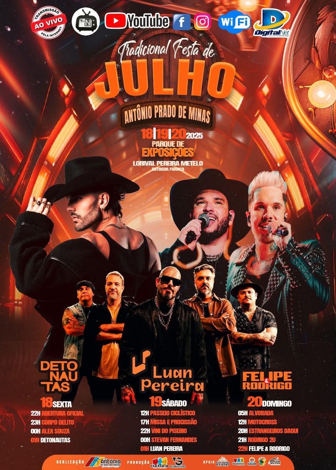 CONFIRA A PROGRAMAÇÃO DA FESTA DE JULHO EM ANTÔNIO PRADO DE MINAS