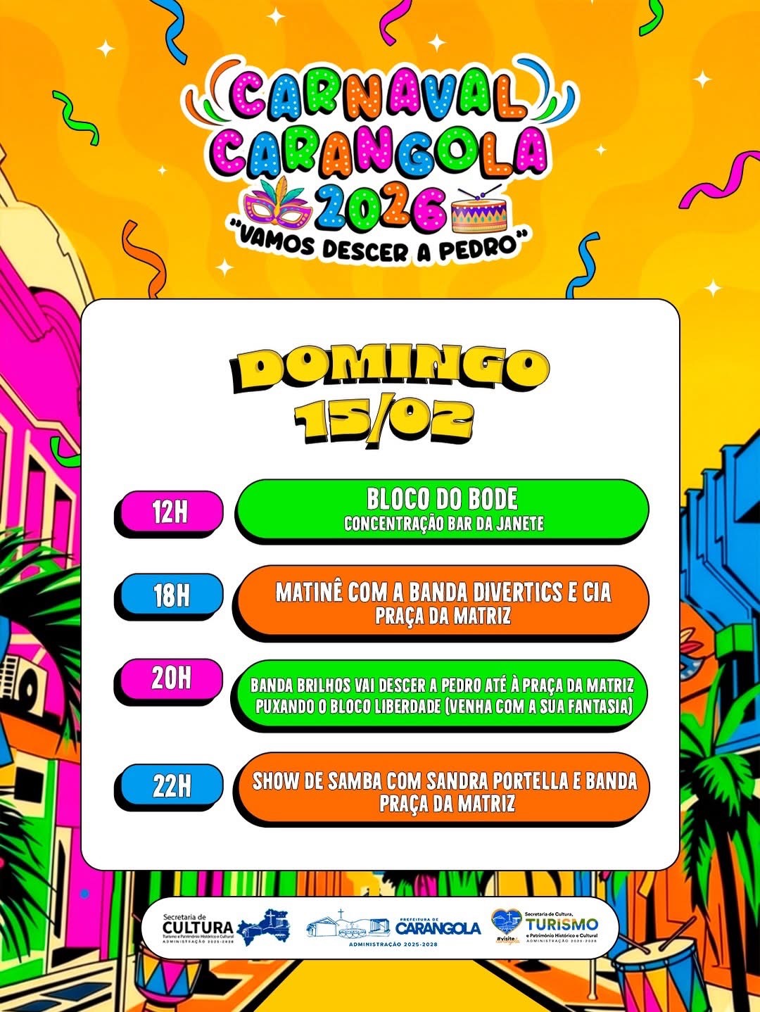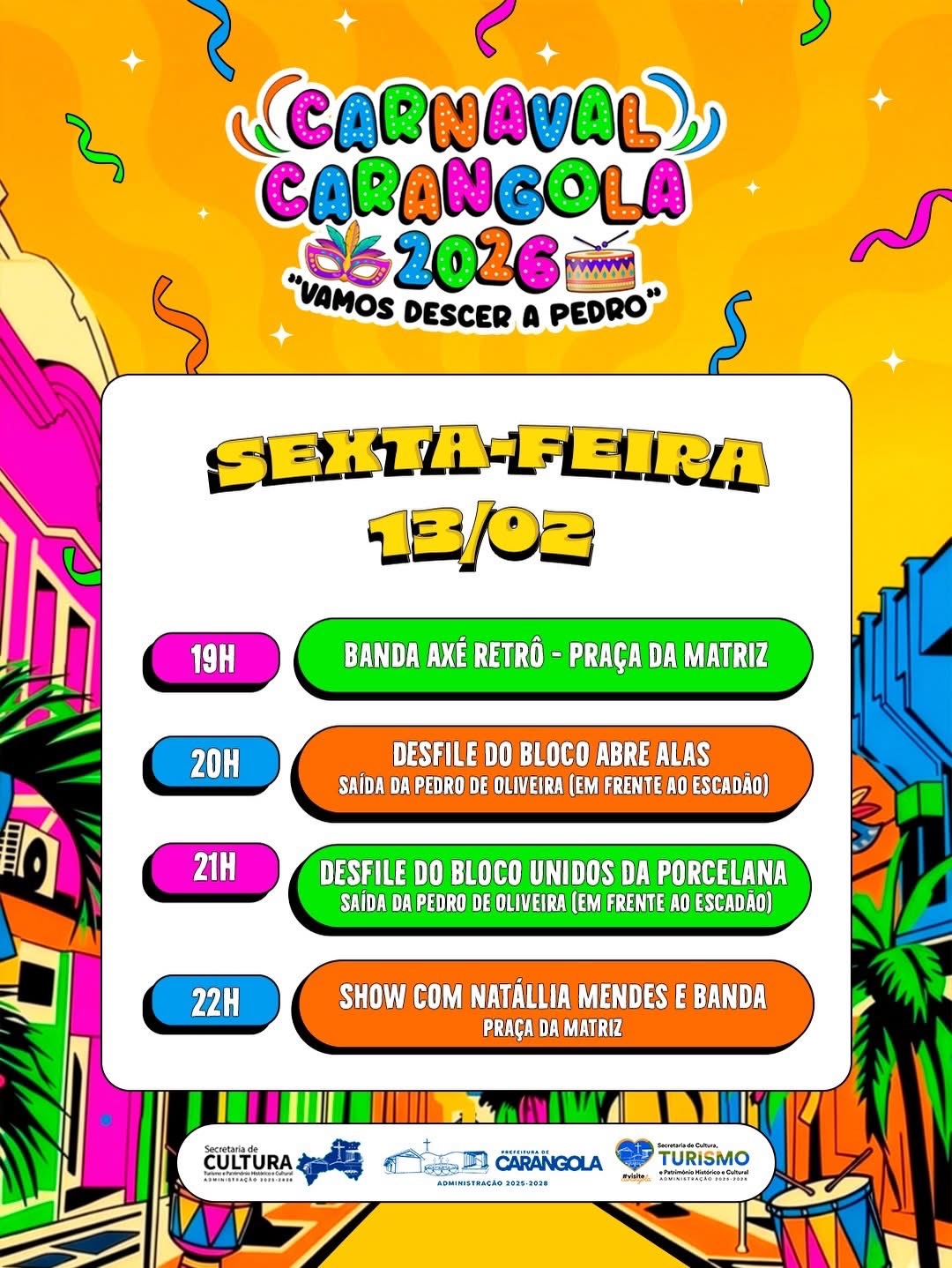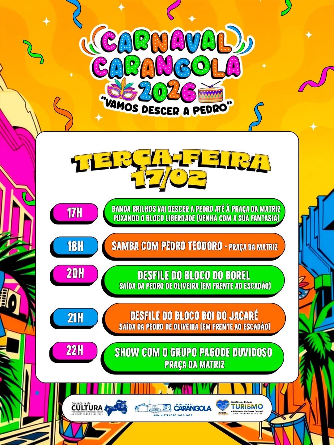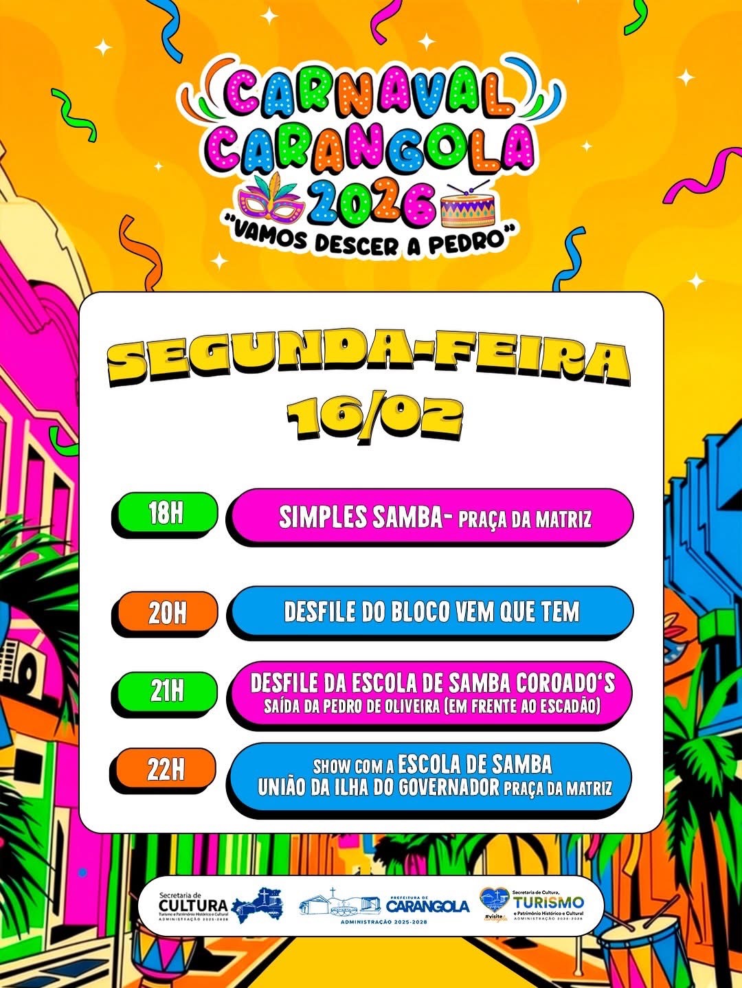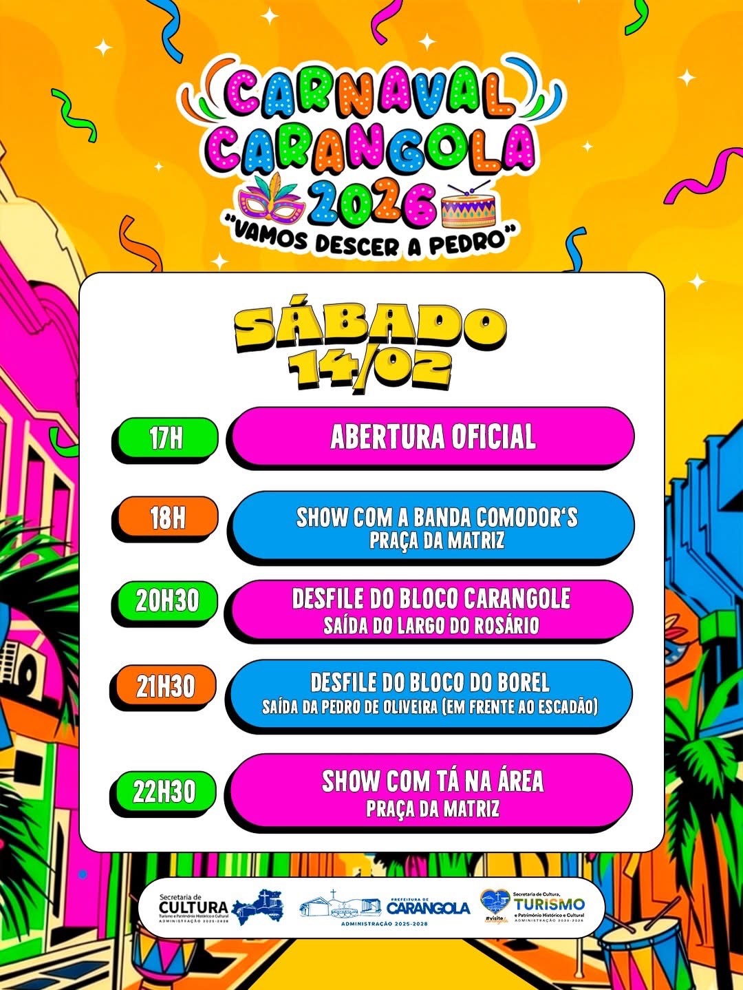 CONFIRA A PROGRAMAÇÃO OFICIAL DO CARNAVAL DE CARANGOLA 2026