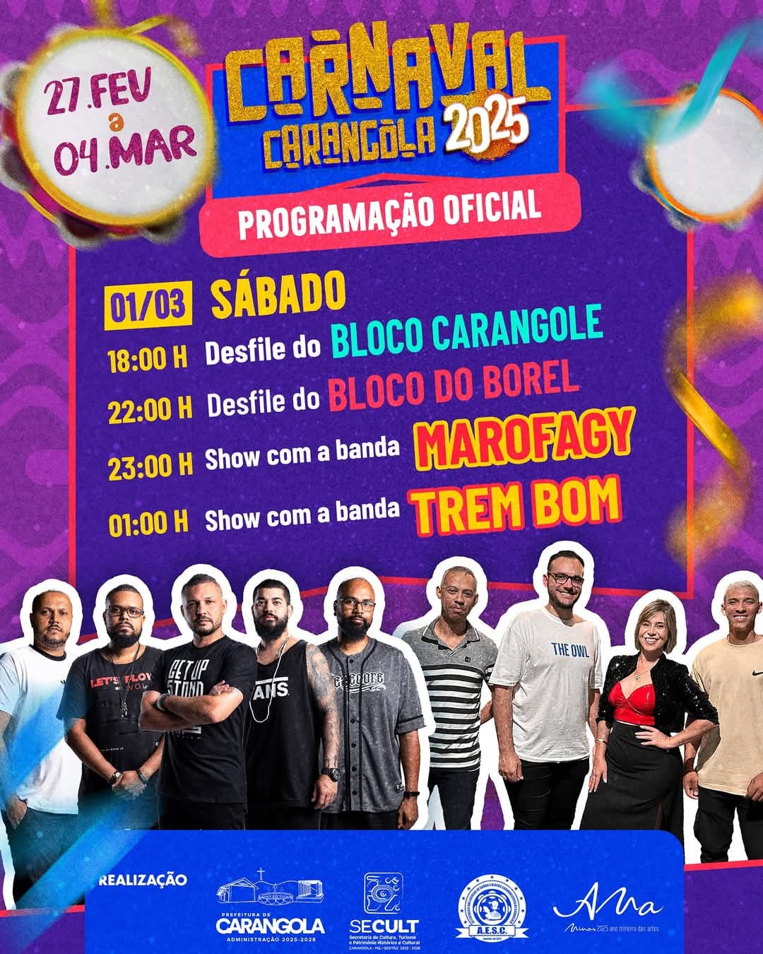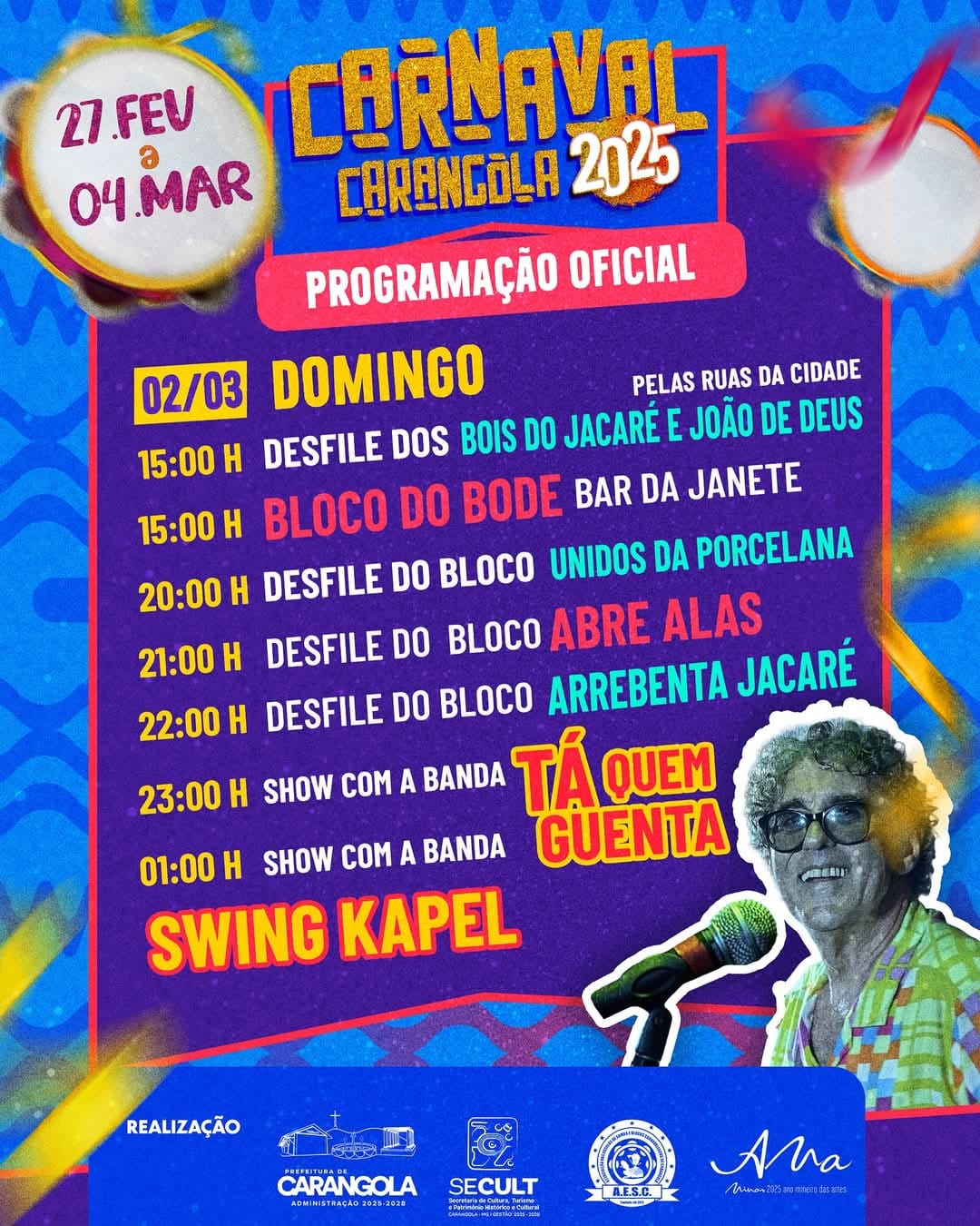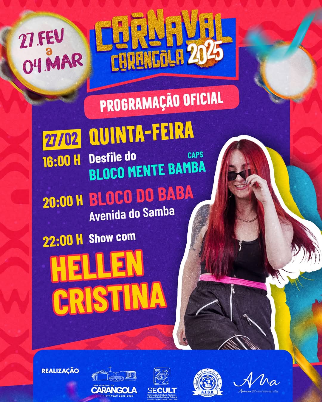 CONFIRA A PROGRAMAÇÃO OFICIAL DO CARNAVAL DE CARANGOLA