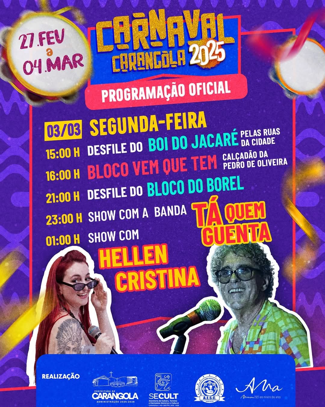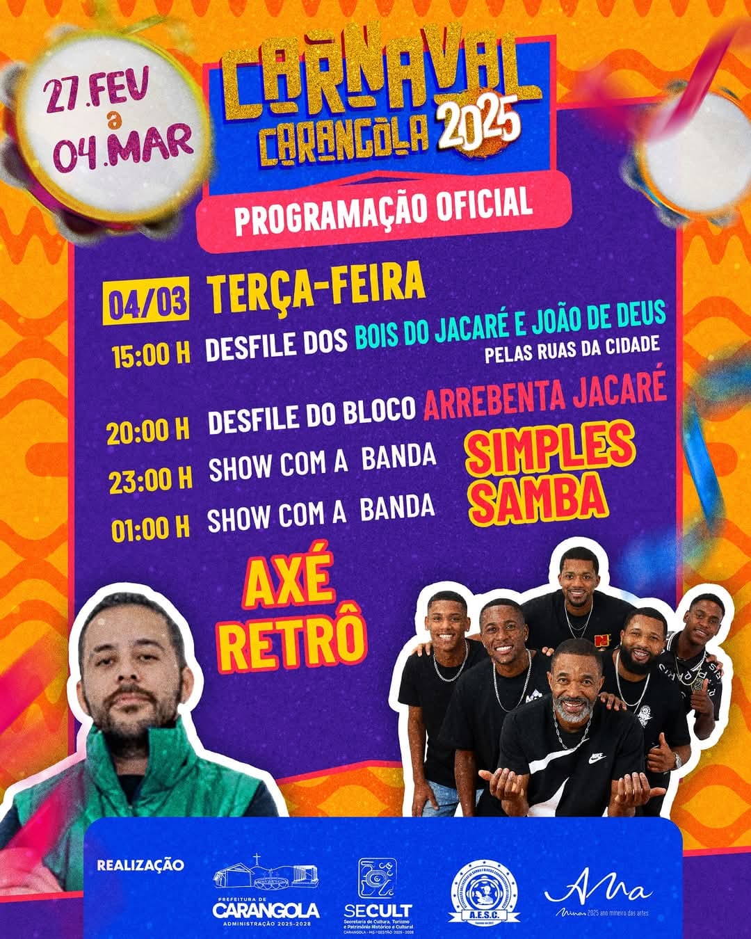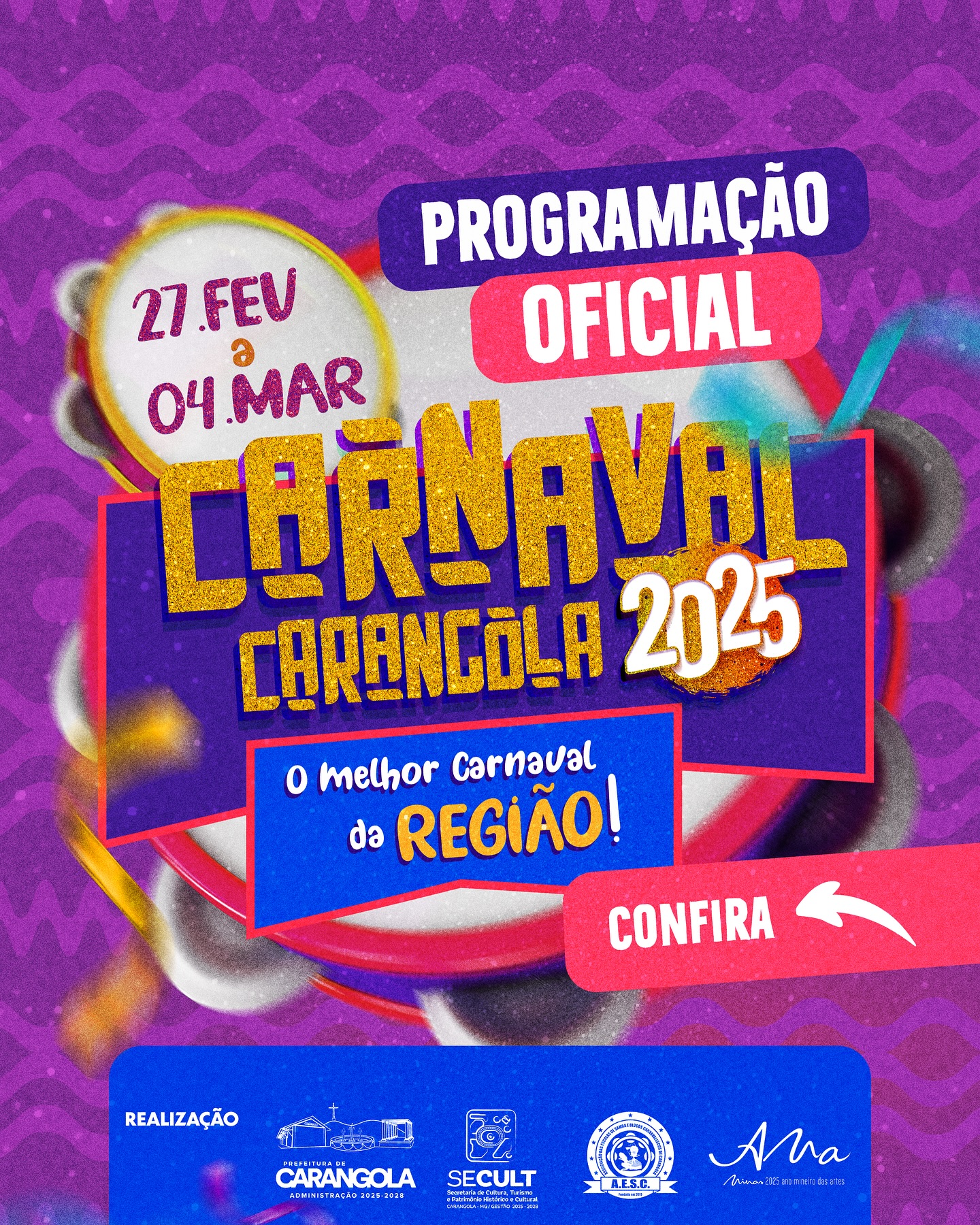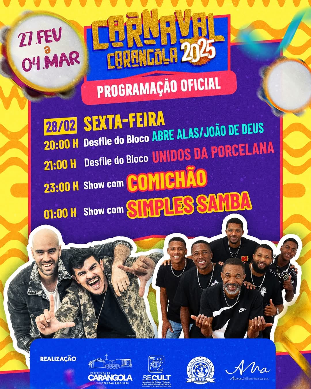 CONFIRA A PROGRAMAÇÃO OFICIAL DO CARNAVAL DE CARANGOLA
