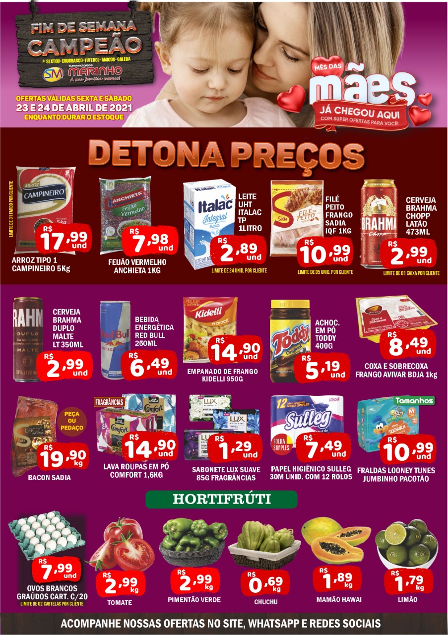 CONFIRA AS OFERTAS DOS SUPERMERCADOS MARINHO PARA ESTE SEMANA FIM DE SEMANA CAMPEÃO DE PREÇOS BAIXOS