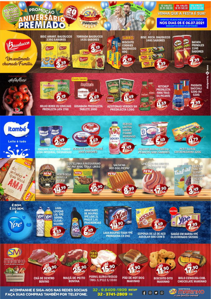CONFIRA AS OFERTAS ESPECIAIS DE ANIVERSÁRIO DOS SUPERMERCADOS MARINHO PARA ESTA SEGUNDA E TERÇA-FEIRA