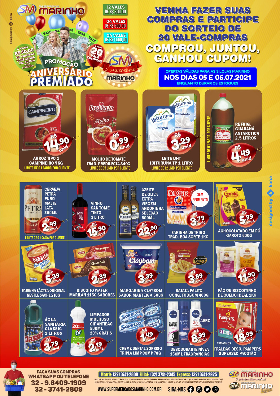 CONFIRA AS OFERTAS ESPECIAIS DE ANIVERSÁRIO DOS SUPERMERCADOS MARINHO PARA ESTA SEGUNDA E TERÇA-FEIRA