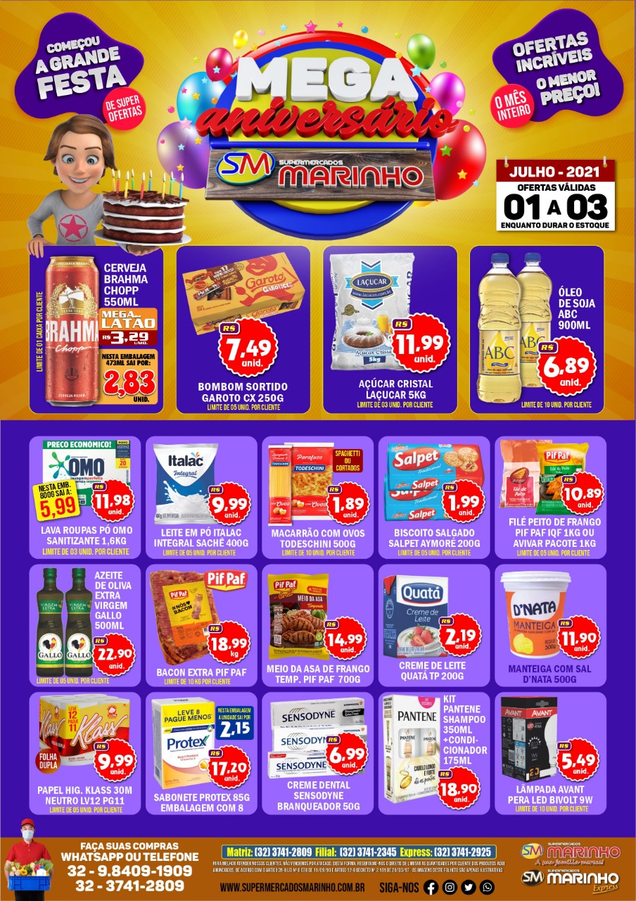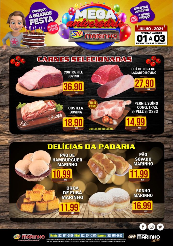 CONFIRA AS OFERTAS IMBATÍVEIS DOS SUPERMERCADOS MARINHO PARA ESTA QUINTA, SEXTA E SÁBADO DE PROMOÇÕES ESPECIAIS DE ANIVERSÁRIO