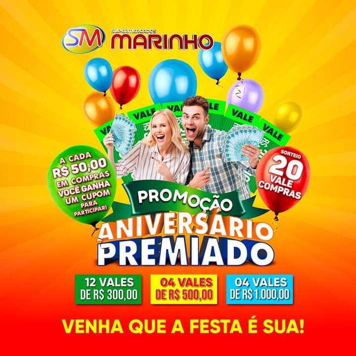 NO ANIVERSÁRIO DOS SUPERMERCADOS MARINHO QUEM GANHA O PRESENTE É VOCÊ!!! APROVEITE!!!