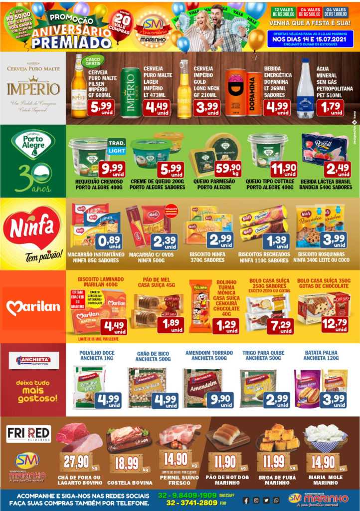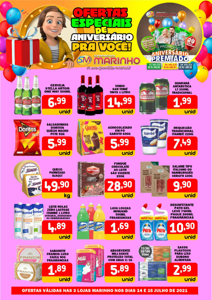 CONFIRA AS OFERTAS IMPERDÍVEIS DOS SUPERMERCADOS MARINHO PARA ESTA QUARTA E QUINTA-FEIRA DE PREÇOS ESPECIAIS DE ANIVERSÁRIO