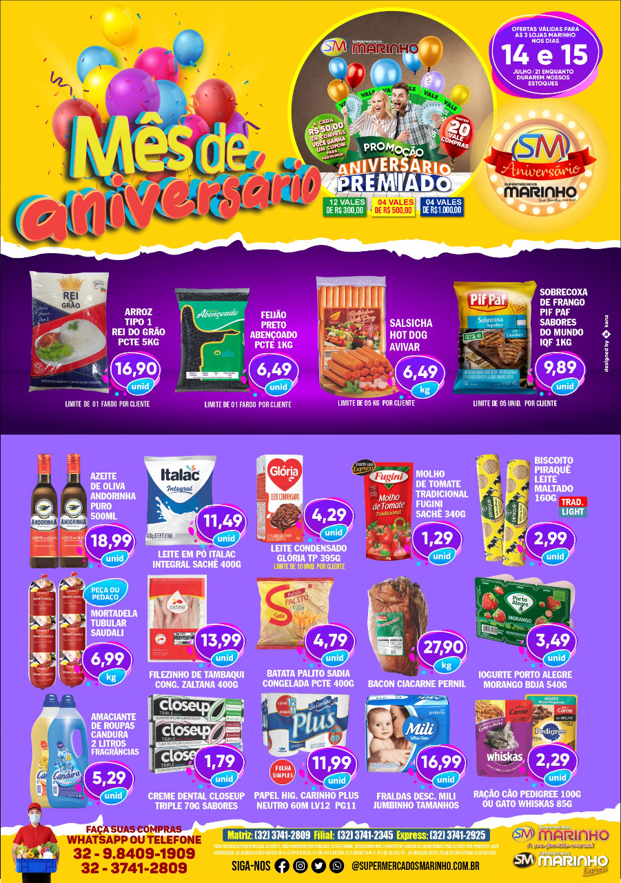 CONFIRA AS OFERTAS IMPERDÍVEIS DOS SUPERMERCADOS MARINHO PARA ESTA QUARTA E QUINTA-FEIRA DE PREÇOS ESPECIAIS DE ANIVERSÁRIO