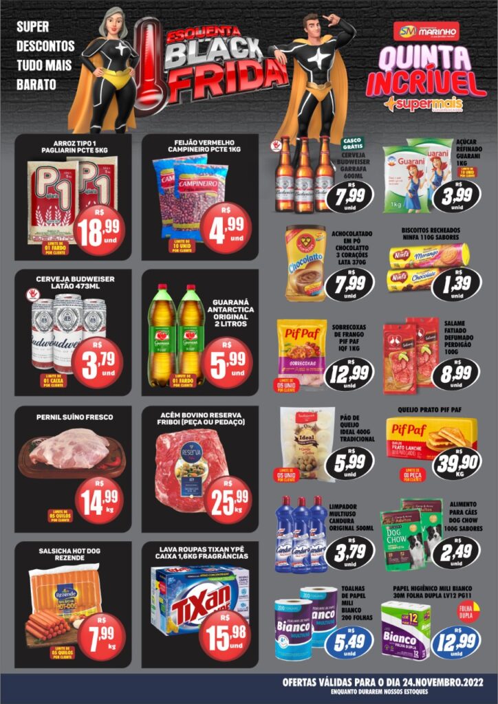 CONFIRA AS OFERTAS SENSACIONAIS BLACK DA COPA DOS SUPERMERCADOS MARINHO PARA ESTA QUINTA-FEIRA ESPECIAL