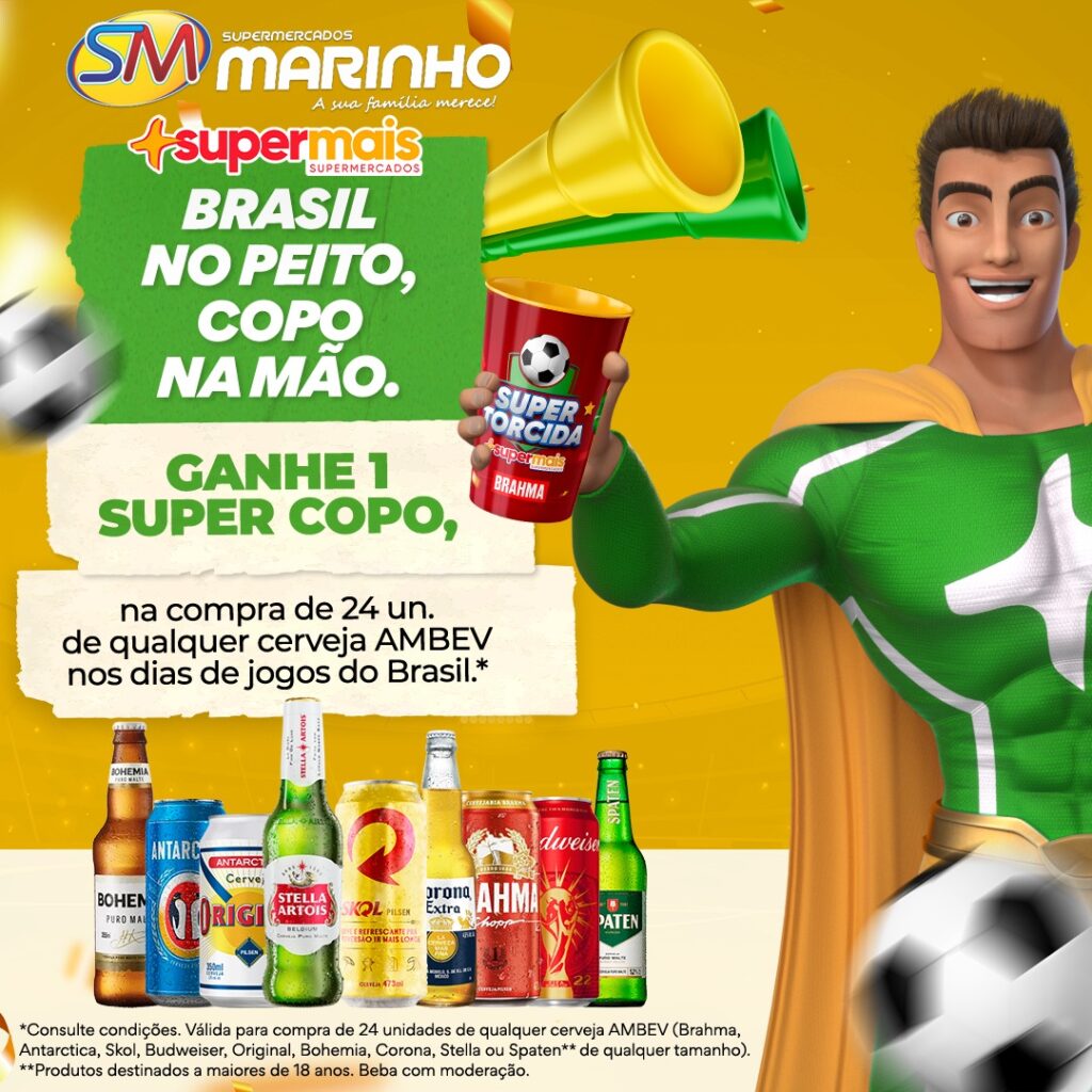 Chegou a BLACK DA COPA do Supermercados Marinho!! Momento oportuno para garantir produtos com os melhores preços e qualidade, tudo para você curtir aquele JOGO DA SELEÇÃO! Estamos na Torcida pelo BRASIL, aproveite as ofertas sensacionais!!
