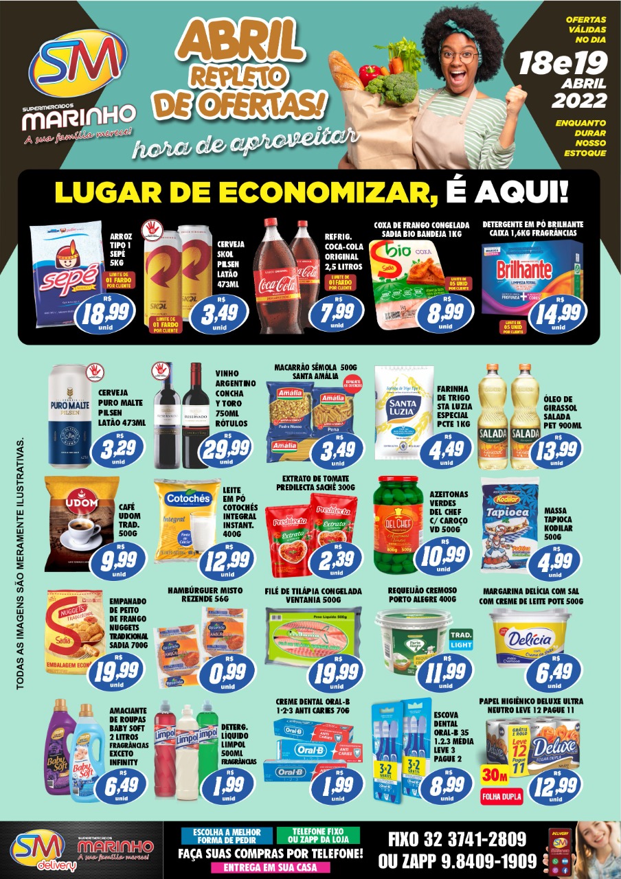 CONFIRA AS OFERTAS SENSACIONAIS DOS SUPERMERCADOS MARINHO PARA ESTA SEGUNDA E TERÇA-FEIRA DE ECONOMIA 18 de abril de 2022 SUPERMERCADOS MARINHO: lugar de economizar é aqui!
