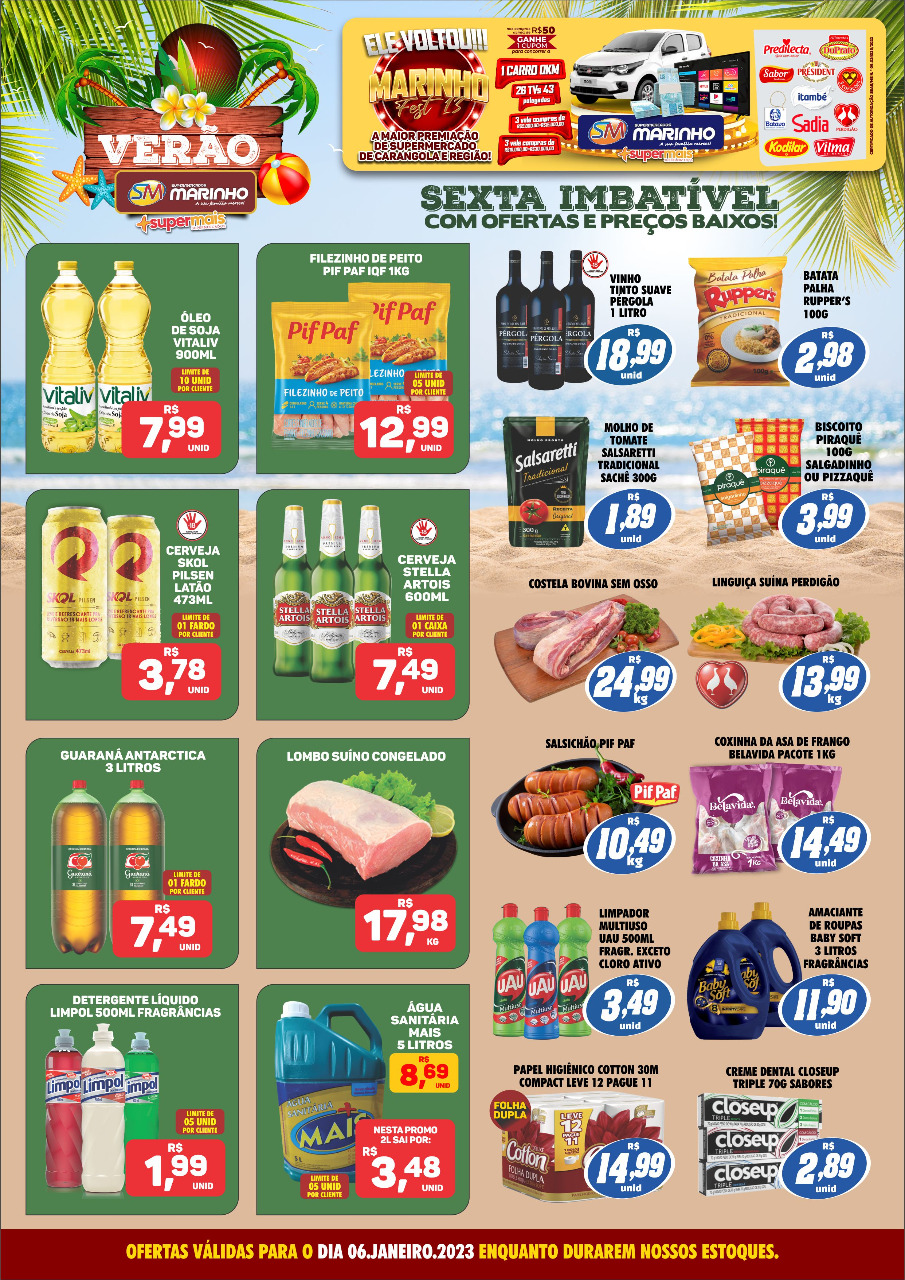 CONFIRA AS OFERTAS SENSACIONAIS DOS SUPERMERCADOS MARINHO PARA ESTA SEXTA-FEIRA IMBATÍVEL 6 de janeiro de 2023 Supermercados Marinho: Preço e Qualidade é aqui! Vem!!
