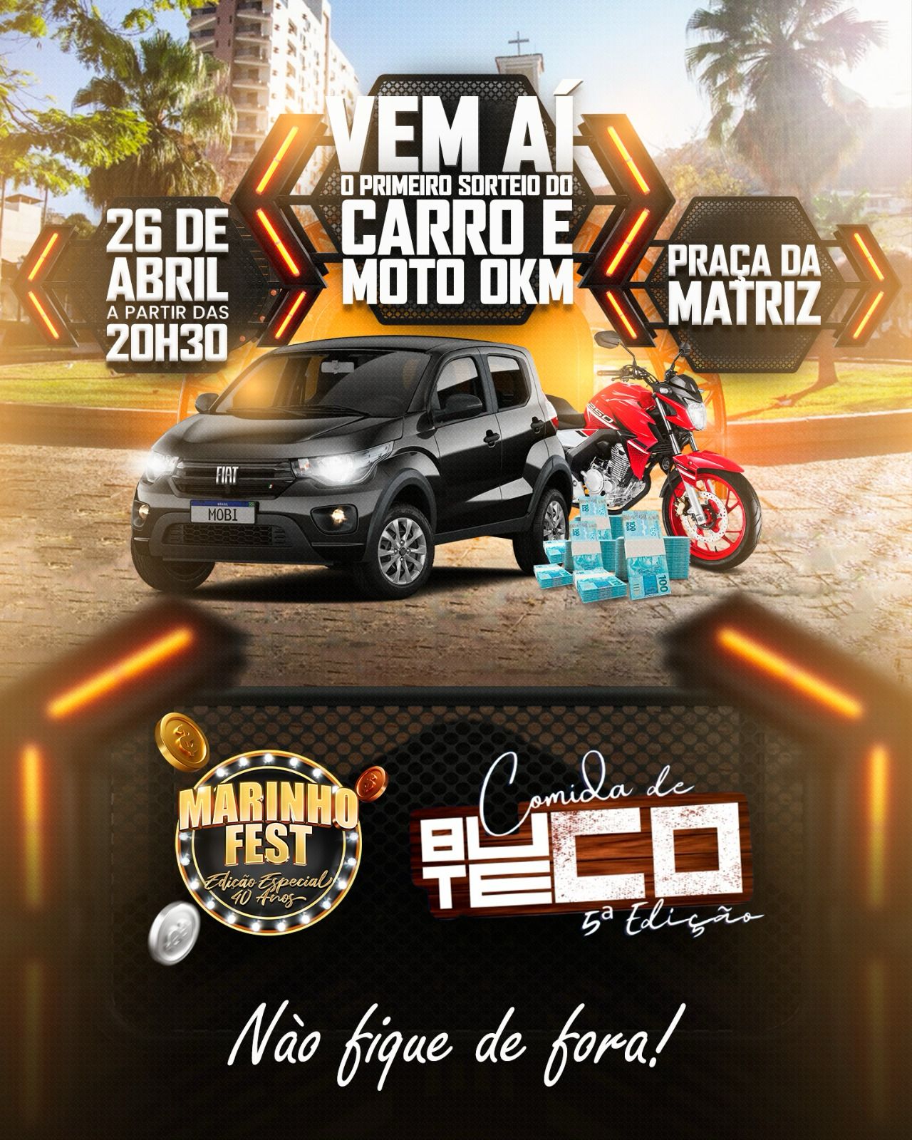 Está chegando o grande dia! Vem aí o primeiro sorteio do primeiro carro e a primeira moto 0km da super promoção MARINHO FESTA EDIÇÃO ESPECIAL!!! Continue fazendo suas compras, trocando seus cupons e prepare-se: dia 26, iremos descobrir quem vai sair motorizado dessa super festa! Não fique de fora!
