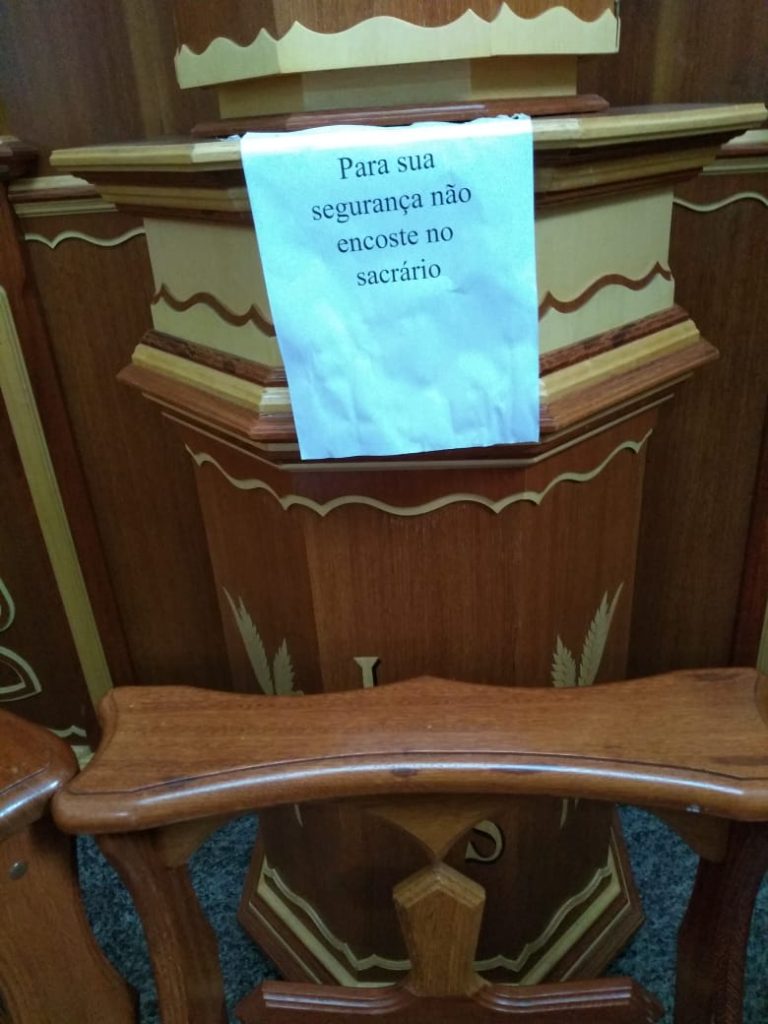 Humanamente poderemos nos revoltar, ou entristecer com essas imagens que demonstram a impossibilidade de nos aproximarmos de Jesus em seu templo. Como podemos ser consolados? Como nos sentiremos quando, ao procurar aproximar de Jesus para “tocar na orla do seu manto” ou sermos tocados por Ele, somos impedidos de nos aproximar?? Jesus tocava todos os enfermos, Ele os curava e libertava!
