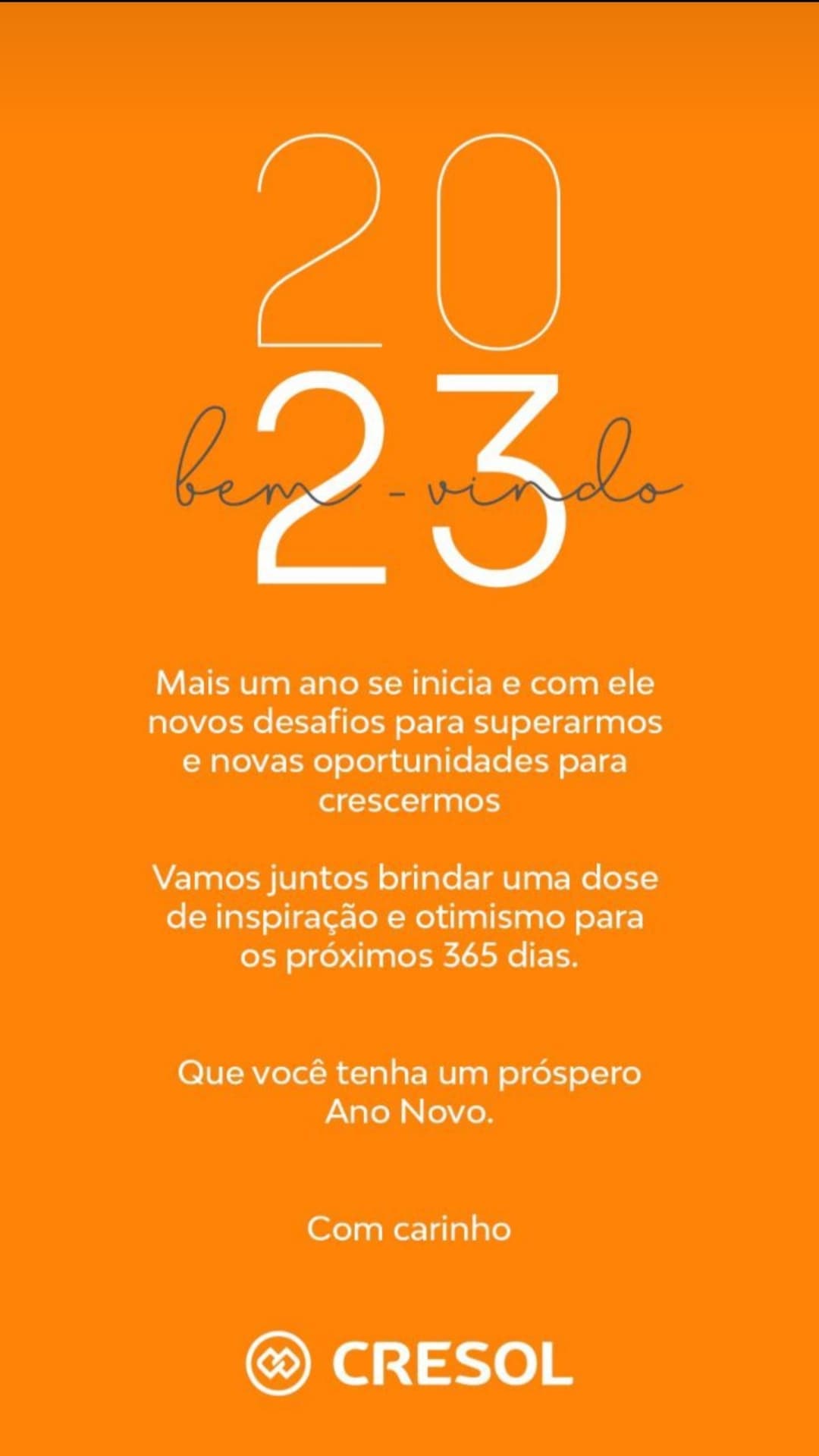 A Cresol aproveita para AGRADECER a todos nossos cooperados que contribuem todos os dias para um mundo melhor. Que em 2023 a Cresol possa realizar ainda mais sonhos: COOPERAR E DAR CRÉDITO FAZ PARTE DA ESSÊNCIA CRESOL, É ATITUDE. É SIMPLES! VEM JUNTO!!