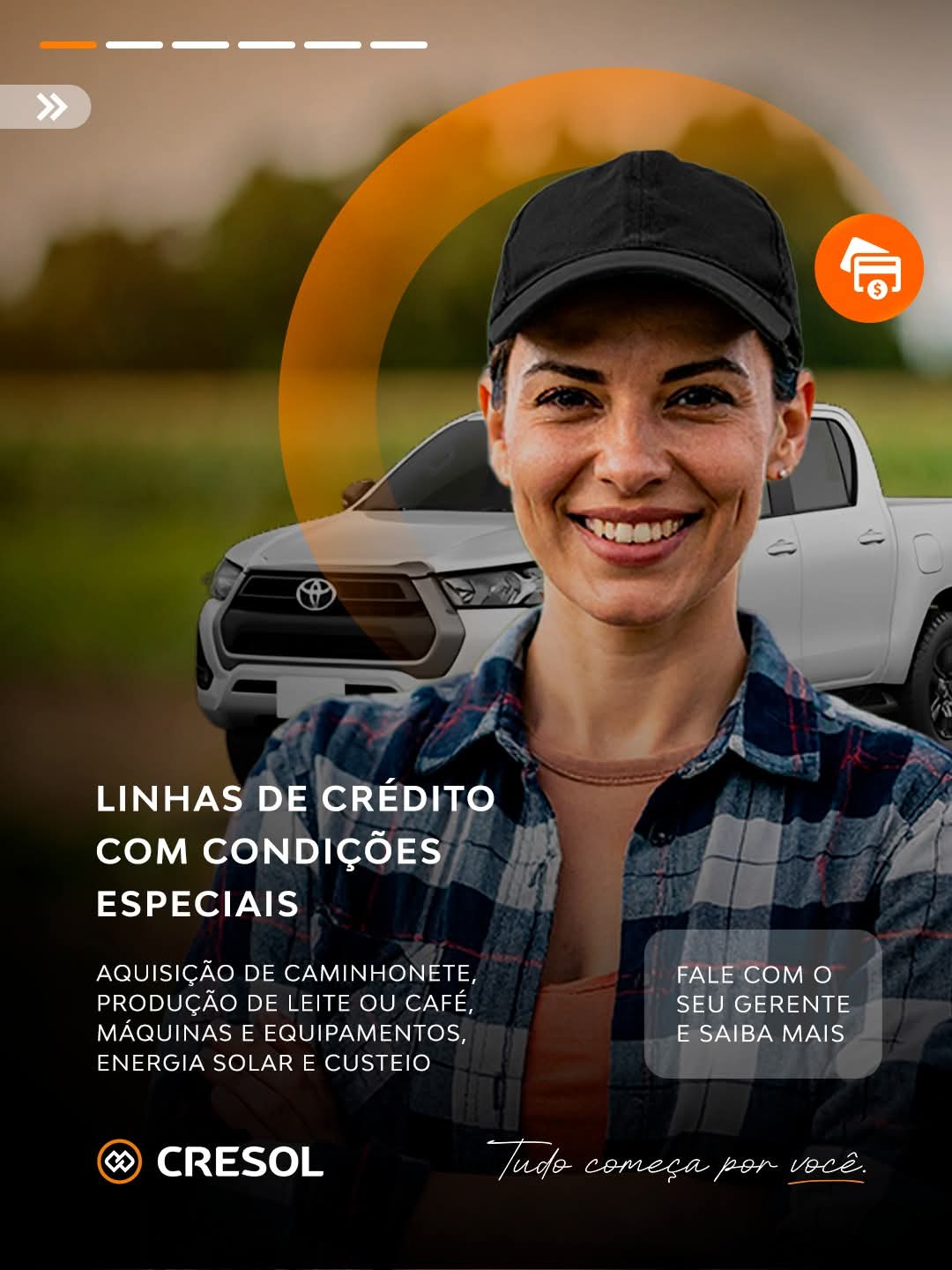 CRESOL OFERECE NOVAS LINHAS DE CRÉDITO COM CONDIÇÕES ESPECIAIS; VENHA PARA A CRESOL E SAIBA AS VANTAGENS PRA VOCÊ!