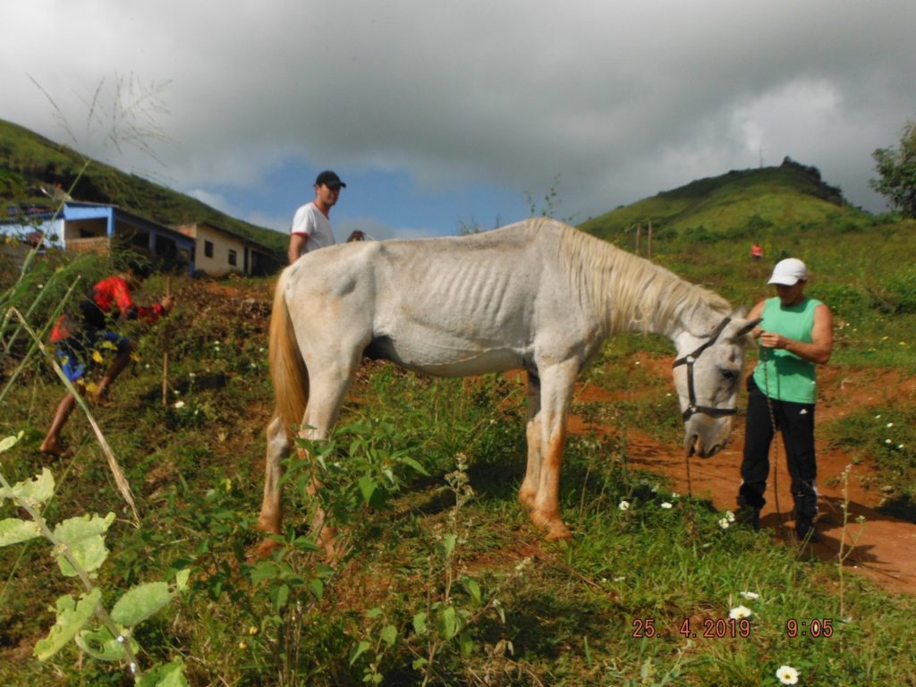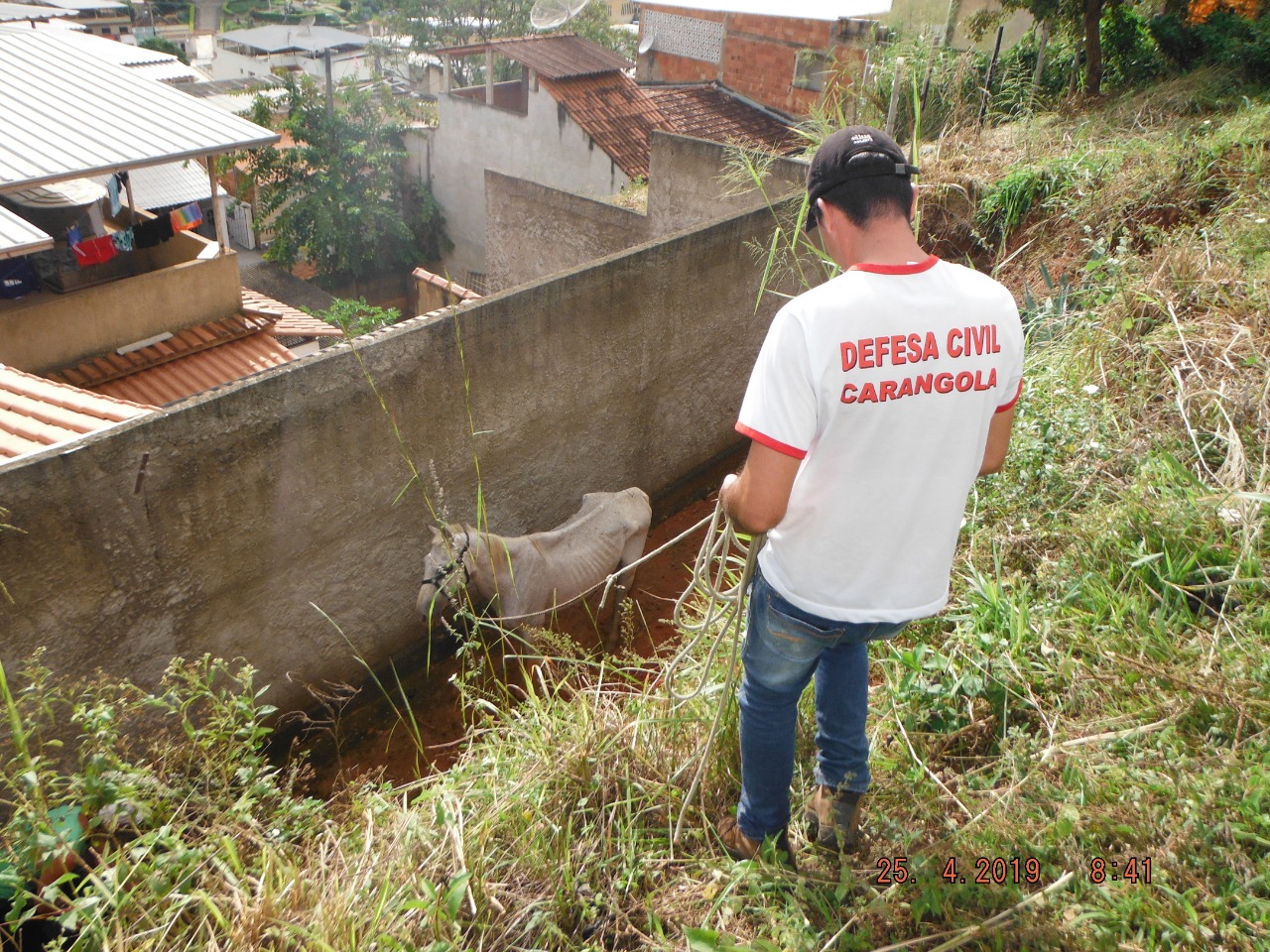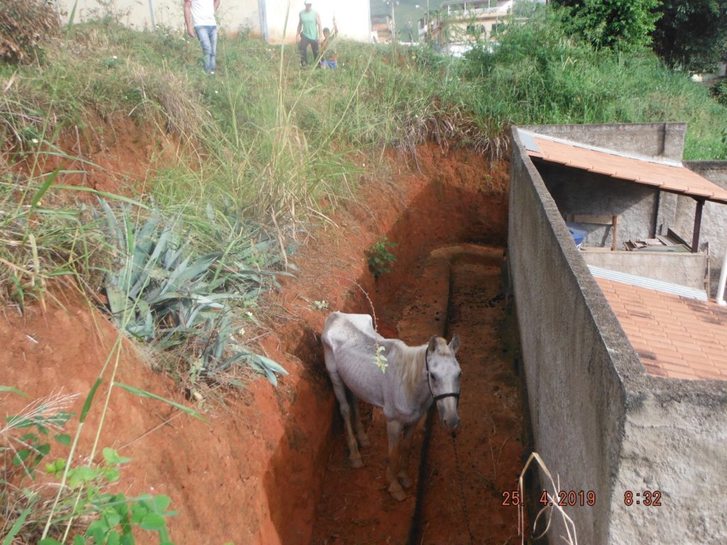 Na última quinta-feira (25), noticiamos que um cavalo, desses abandonados pelas ruas de Carangola, havia caído em um vão de um quintal de uma residência às proximidades do campo do Carrapatinho. O morador acionou a Defesa Civil que de imediato compareceu ao local e além de alimentar e dar água ao animas, improvisou uma subida para que o animal pudesse passar e sair do buraco.