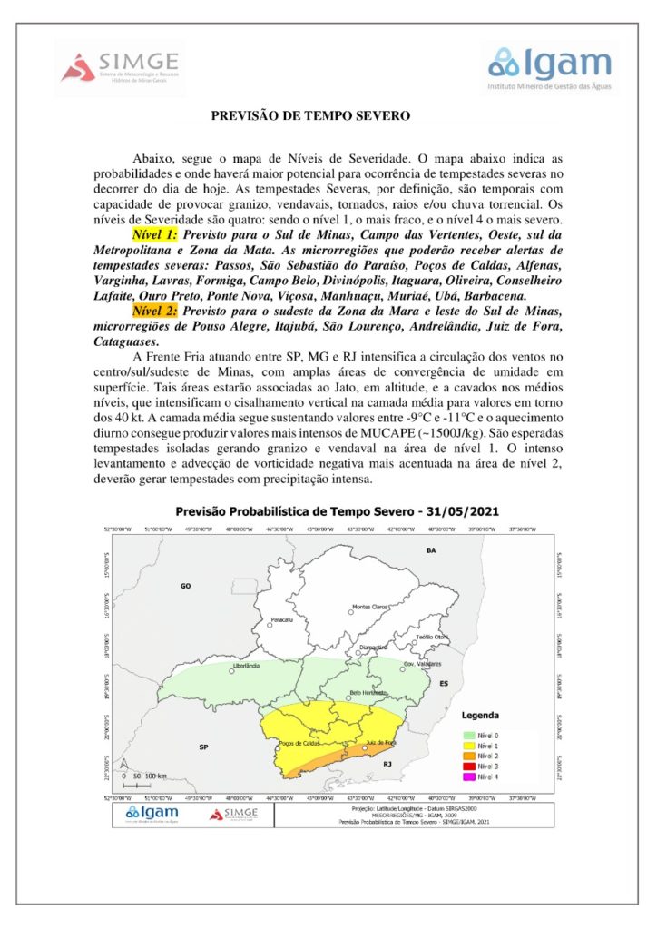 DEFESA CIVIL INFORMA PREVISÃO DE TEMPESTADES SEVERAS COM POSSIBILIDADE DE GRANIZO E VENDAVAL NA ZONA DA MATA