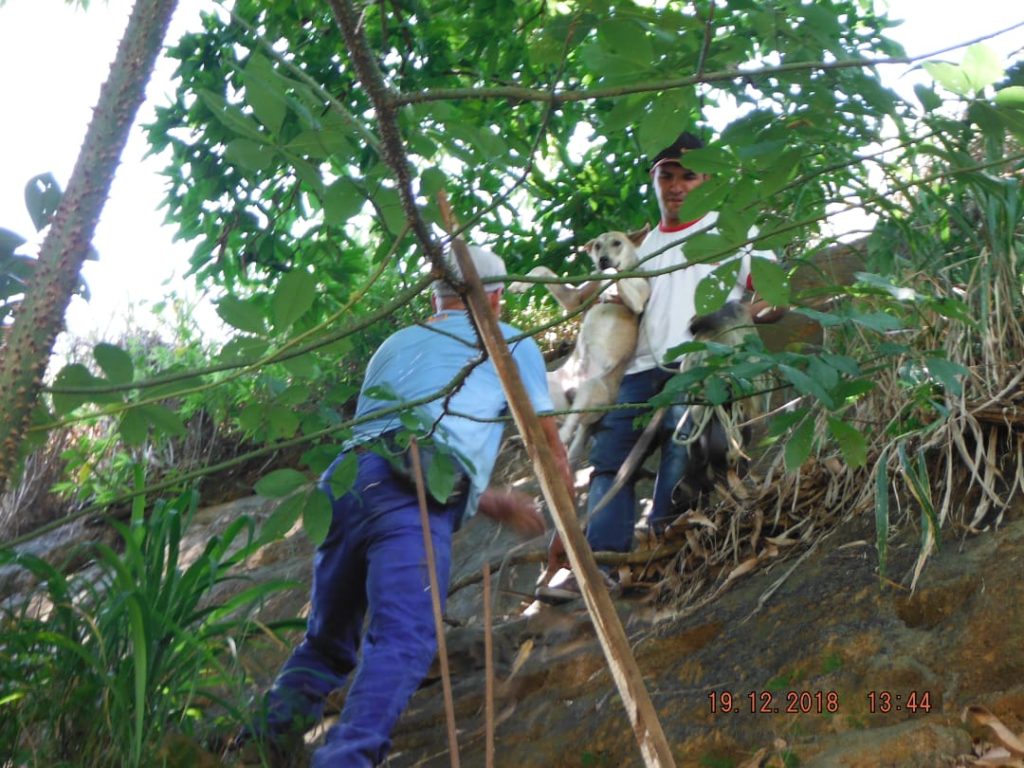 A Defesa Civil de Carangola foi acionada na manhã desta quarta-feira (19) para resgatar um cachorro que se encontrava preso na pedreira, perto do colégio “Estadual”. Segundo os moradores, o cachorro se encontrava já há 3 dias no local.
