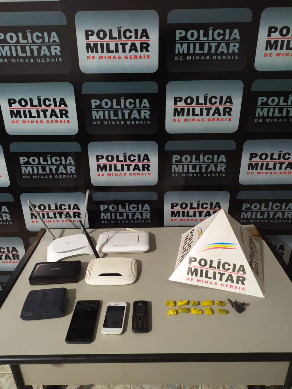 Naa última quinta-feira (04), após várias denúncias dando conta de que havia uma briga de casal em determinado endereço em Divino, a guarnição PM deslocou para o local onde deparou com os envolvidos sujos de sangue e vestígios de drogas na residência do autor. Foram localizadas pela equipe 10 buchas maconha e 1 invólucro da mesma droga, que segundo o autor, faria uma plantação. De acordo com outras denúncias, o autor estaria traficando drogas no local. Junto com a droga foram apreendidos 3 aparelhos celulares e 5 aparelhos roteadores de procedência duvidosa.