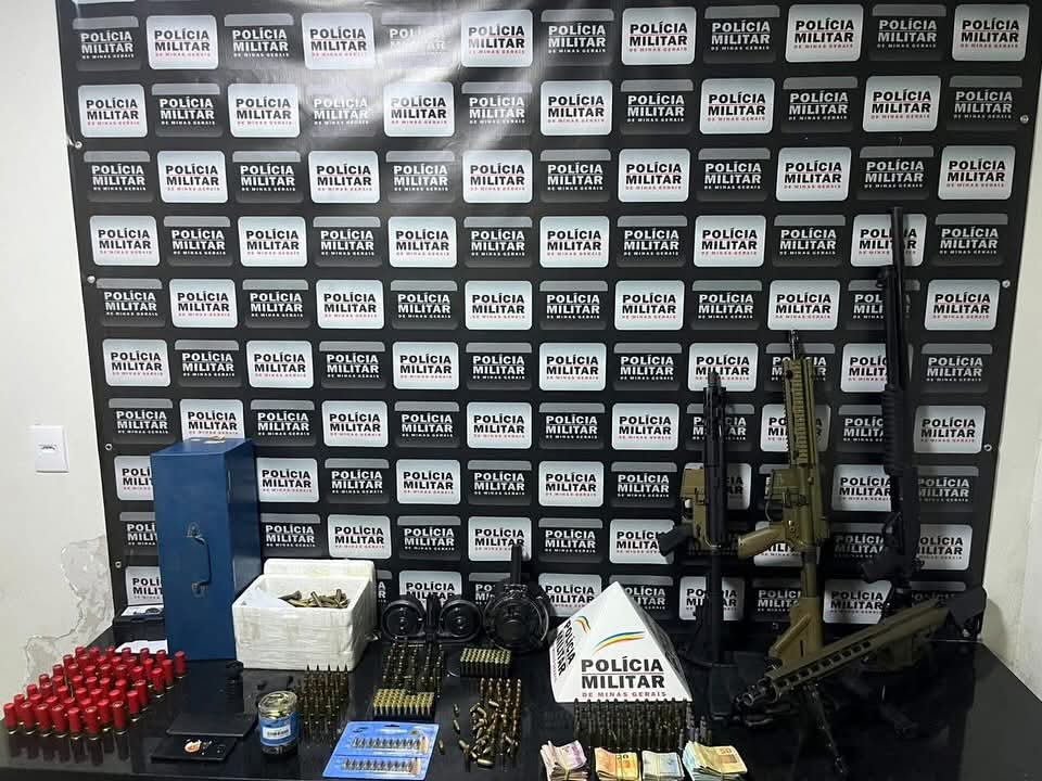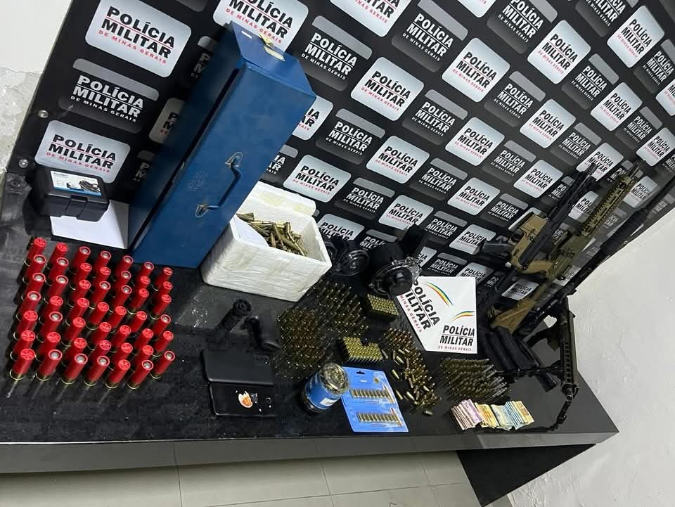 Durante as diligências, os militares localizaram armamentos de alto calibre, grande quantidade de munições e dinheiro em espécie. Dois indivíduos, de 74 e 38 anos, foram detidos e encaminhados à Delegacia de Polícia Civil.