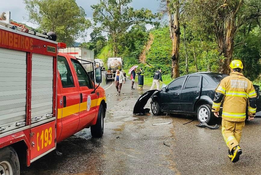O acidente foi uma colisão frontal entre um Ford Fiesta e uma Scania. Os bombeiros precisaram cortar as ferragens para retirar a passageira do carro. Ela foi socorrida inconsciente com suspeita de traumatismo e fraturas nas pernas.