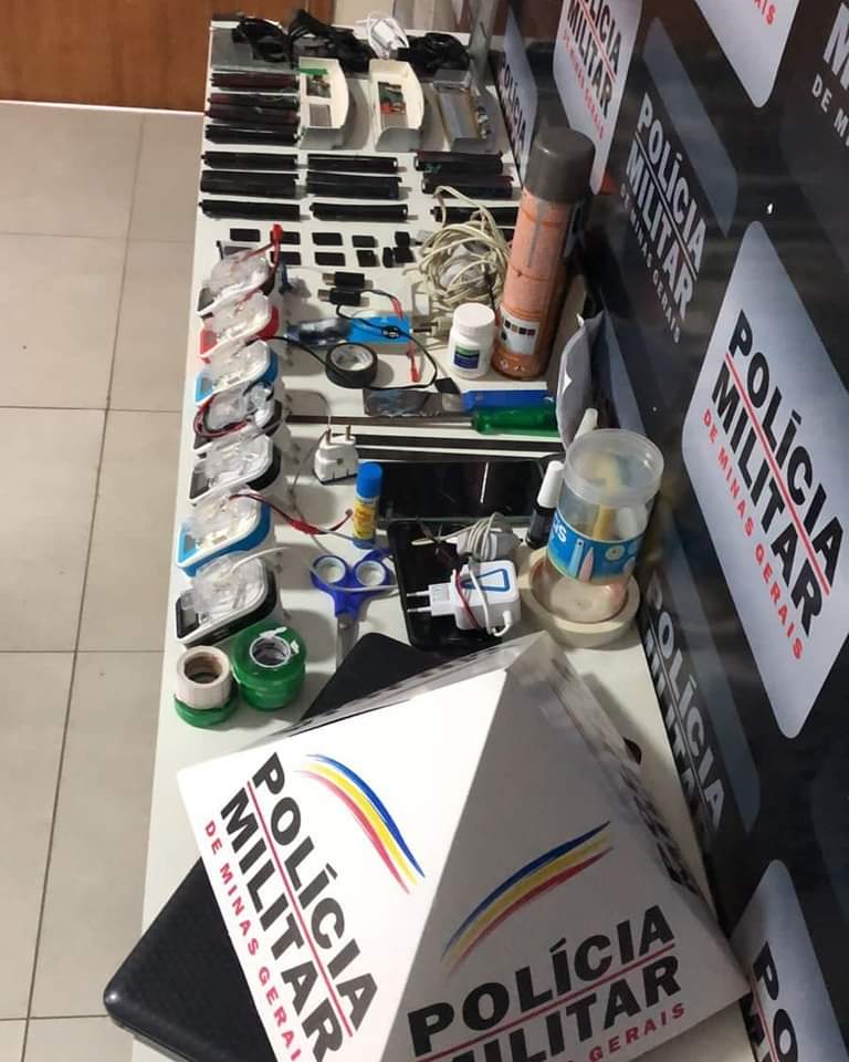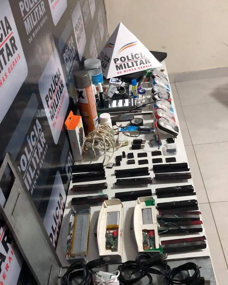 Foi procedida a abordagem, sendo localizados diversos materiais utilizados pelos infratores para a prática de crimes contra o patrimônio, sendo 14 dispositivos de subtração de envelopes, 03 “chupa-cabras”, 01 placa de metal, dentre outros diversos equipamentos de informática e ferramentas.