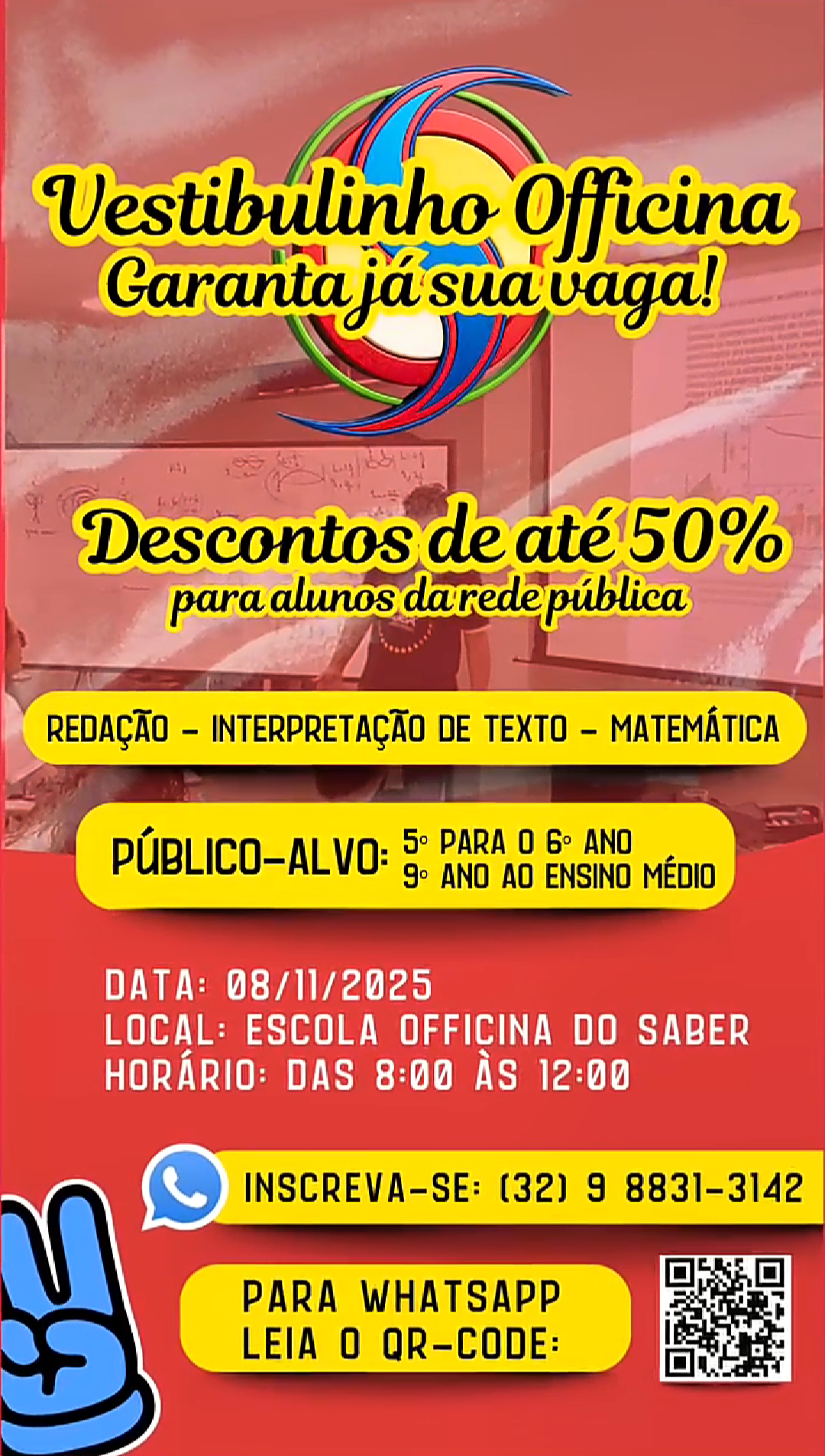 ESCOLA OFFICINA DO SABER PROMOVERÁ O “VESTIBULINHO” OFERECENDO DESCONTOS DE ATÉ 50% A ALUNOS DA REDE PÚBLICA; GARANTA JÁ A SUA VAGA!