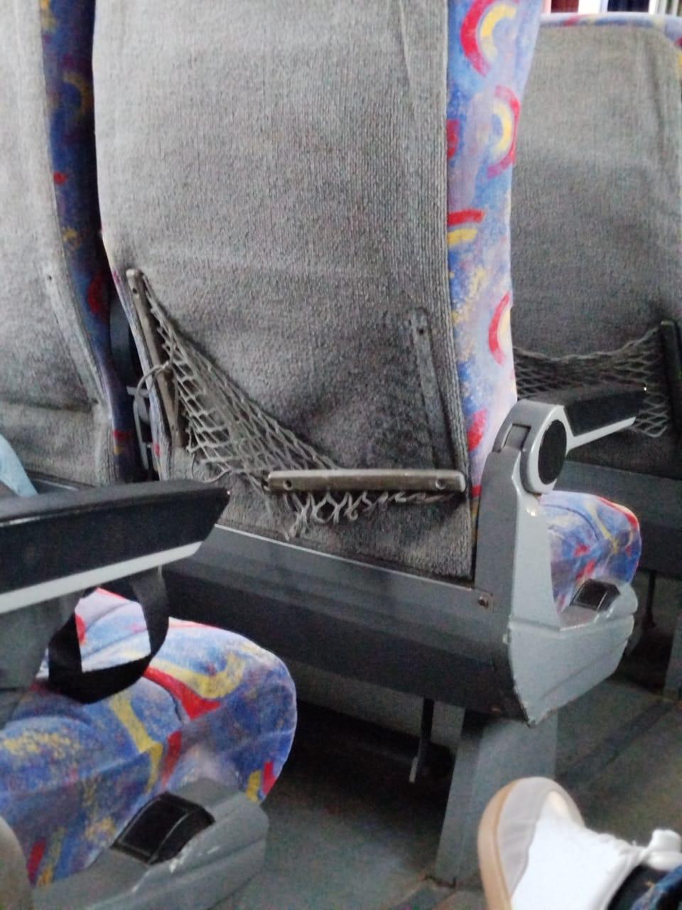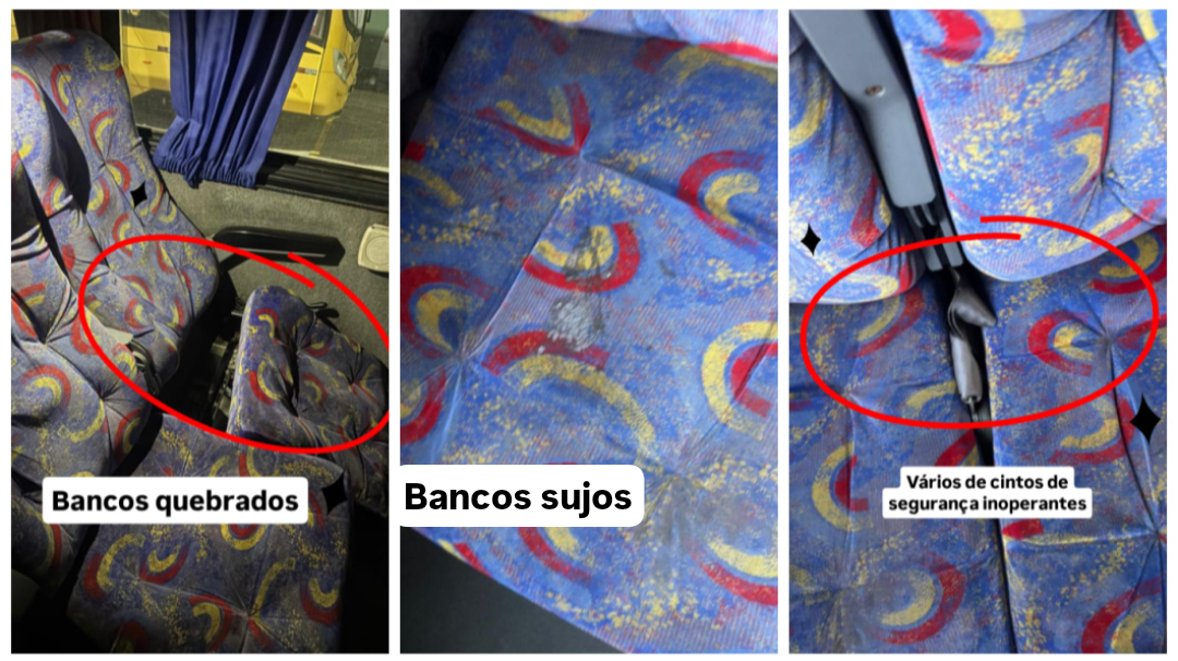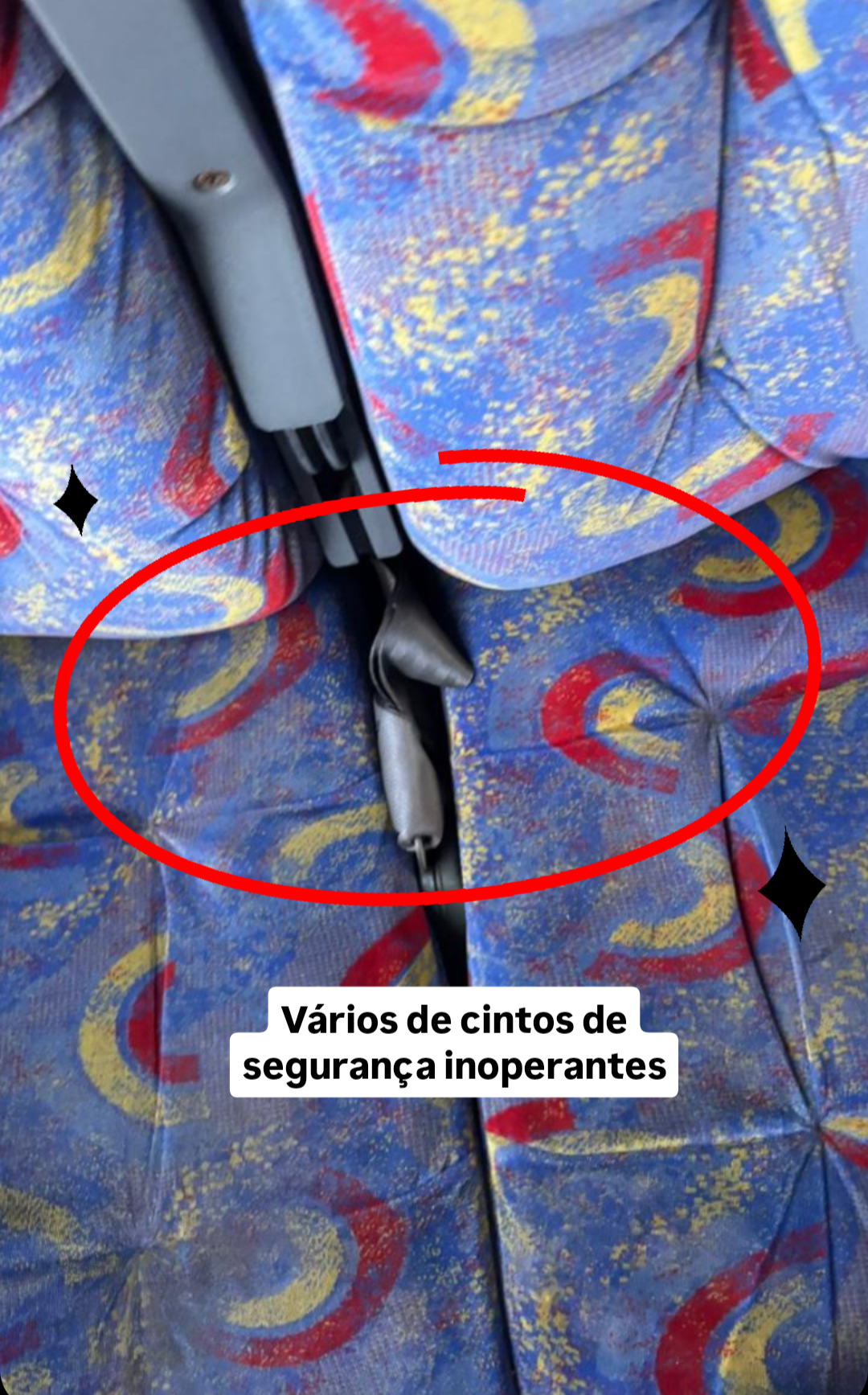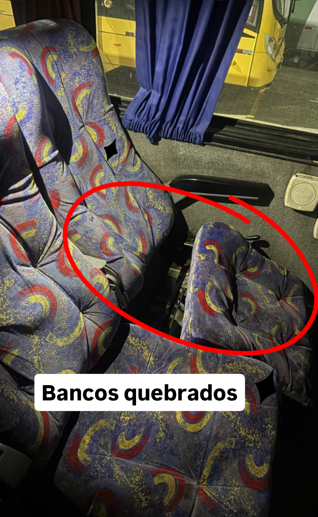 Poltronas quebradas ou soltas, comprometendo a segurança durante a viagem;