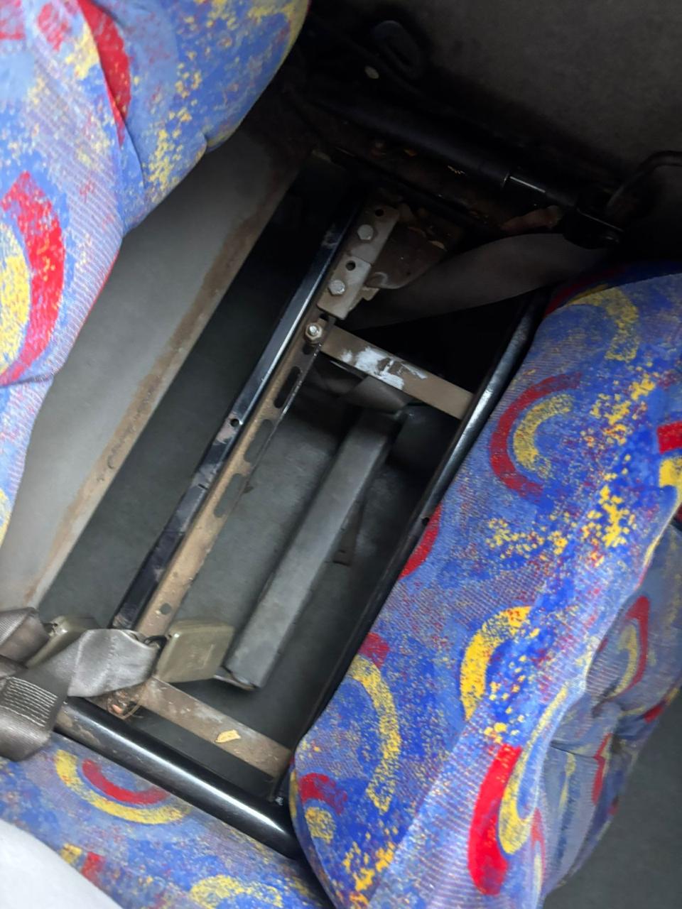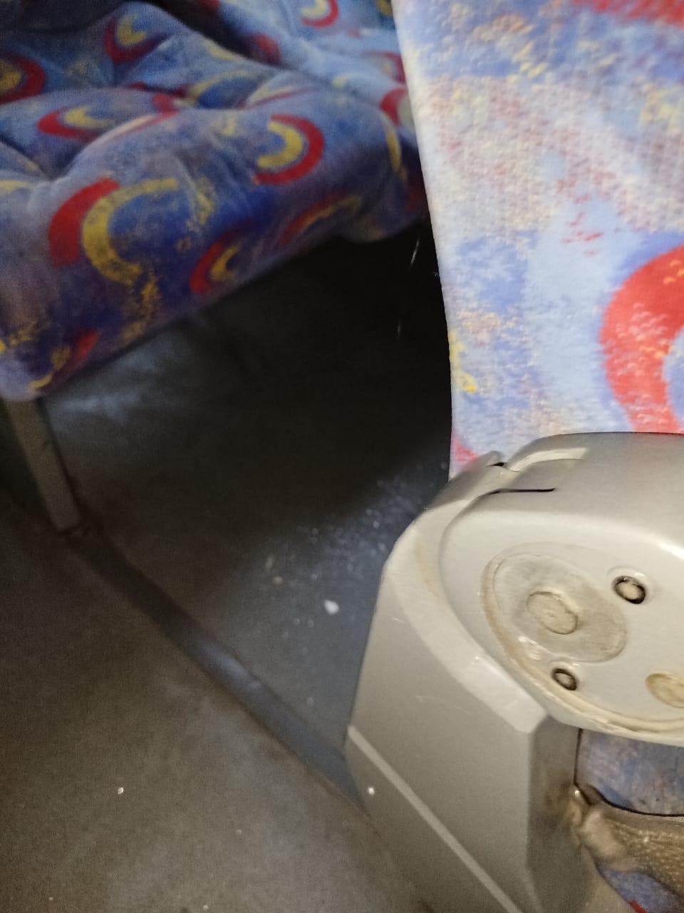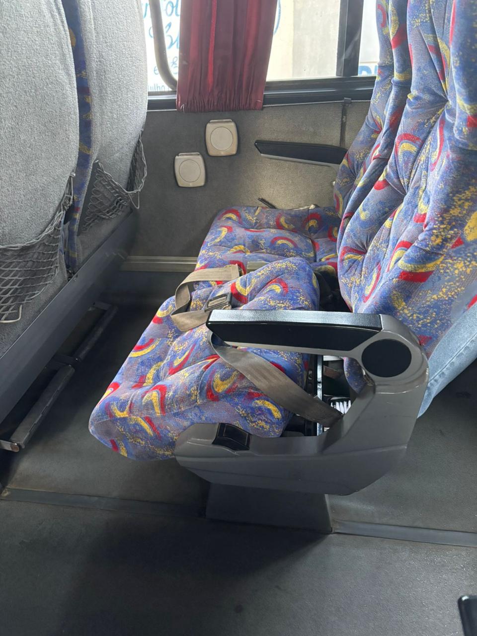 Poltronas quebradas ou soltas, comprometendo a segurança durante a viagem;