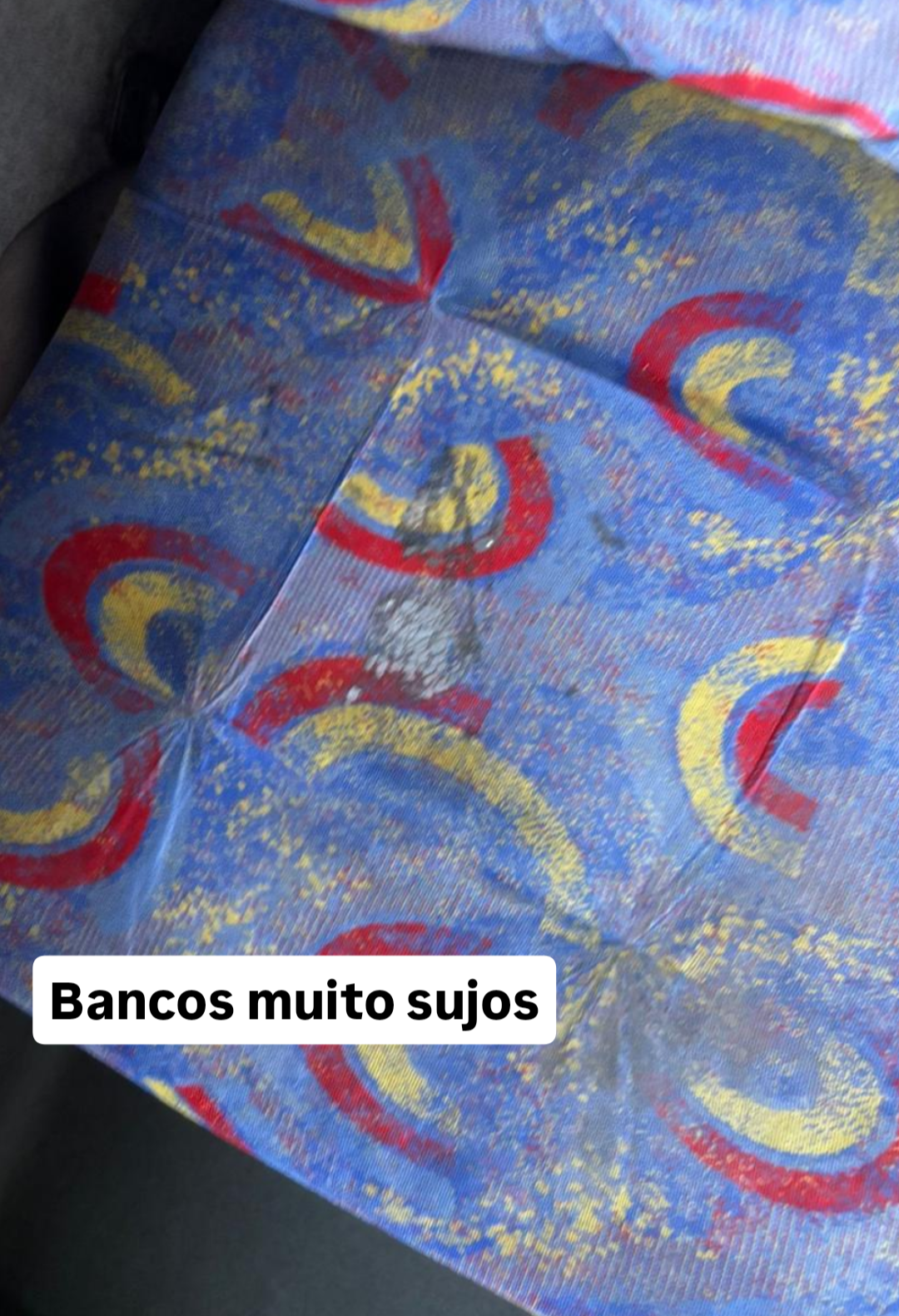 Assentos com chicletes colados, sujeira acumulada e falta de higiene;