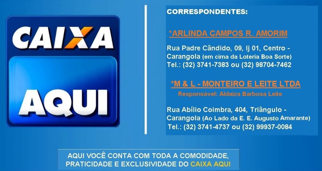 A Caixa oferece diversas formas de financiamento para ajudar você a investir na casa que sempre sonhou, e para ficar ainda melhor os Correspondentes Caixa Aqui ARLINDA CAMPOS R. AMORIM e M & L – MONTEIRO E LEITE LTDA oferecem a você a praticidade para obter produtos e serviços da Caixa, sem precisar deslocar até uma agência bancária, sem enfrentar filas de espera, ou perder seu tempo para conseguir informações.