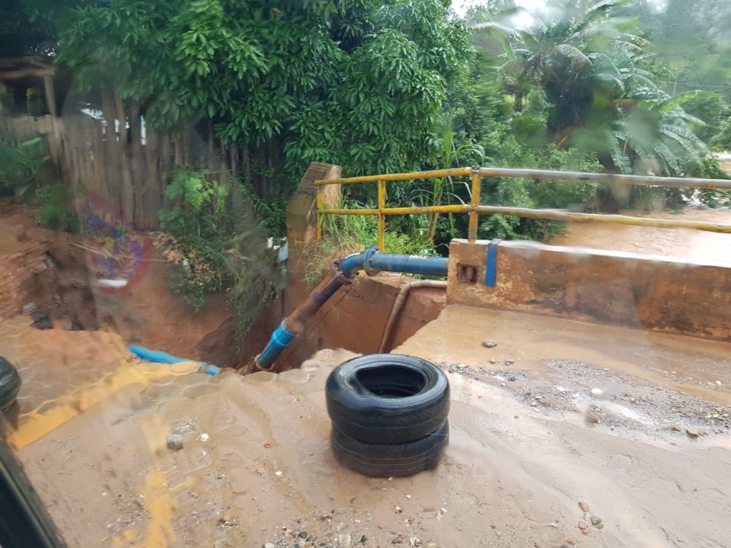 A força das águas da chuva abriu uma cratera ao lado da ponte localizada no final da Avenida Maria Amélia de Souza Pedrosa, no centro de Fervedouro. O local foi sinalizado e veículos devem passar pelo local com bastante atenção.