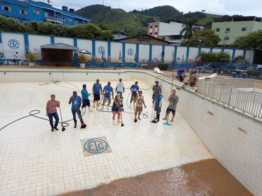 “Amigos, assim vamos com muito esforço e união, reconstruindo nosso clube. Nossos colaboradores e os super parceiros terceirizados estão desde domingo, trabalhando no ritmo de 10 horas ou mais por dia, almoçando no clube, com a finalidade de recuperarmos tudo que está sendo possível. Nesta piscina foram retirados além de entulhos, cerca de 350 carrinhos de lama em dois dias, está pronta para limpeza da ferrugem e manchas ( Empresa de Caratinga) amanhã cedo. Após esta super limpeza, faremos a higienização e colocaremos para encher neste sábado ou domingo. Nossa equipe, com o devido revezamento, vai trabalhar neste sábado e domingo e em todos os dias, até a data de reabertura, marcada para mais ou menos final de março para abril, cerca de 45 a 60 dias, ou antes se Deus quiser.