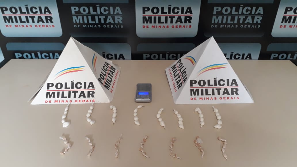 NESTA SEXTA-FEIRA (26), A POLÍCIA MILITAR DE CARANGOLA REALIZOU OPERAÇÃO REGIÃO SEGURA, OPORTUNIDADE EM QUE RECEBERAM DENÚNCIAS ANÔNIMAS DE QUE UM INDIVÍDUO ESTARIA REALIZANDO O TRÁFICO DE INTENSO DE DROGAS NO BAIRRO NOVOS TEMPOS E ESTARIA ESCONDENDO OS ENTORPECENTES EM UMA CASA DESABITADA. OS POLICIAIS DILIGENCIARAM ATÉ O LOCAL INDICADO NAS DENÚNCIAS E AO REALIZAREM BUSCAS ACESSANDO O TERRAÇO DO IMÓVEL POR UMA ESCADA LATERAL, LOCALIZARAM UMA SACOLA PENDURADA EM UM COQUEIRO, A QUAL EM SEU INTERIOR ESTAVA UM RECIPIENTE DE PLÁSTICO CONTENDO 42 PEDRAS DE CRACK E 40 PAPELOTES DE COCAÍNA, EMBALADOS SEPARADAMENTE PRONTOS PARA A VENDA, BEM COMO UMA BALANÇA DE PRECISÃO, GERALMENTE UTILIZADA PARA PESO DE DROGAS FRACIONADAS.