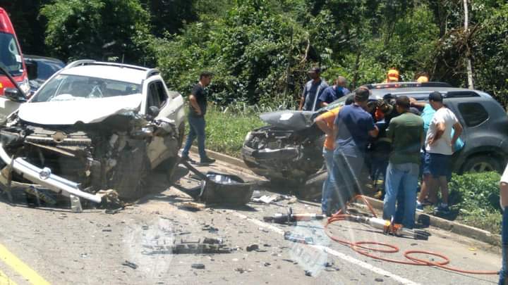 Um acidente entre um Fiat Toro e um Renault Duster foi registrado na manhã desta quarta-feira (12), na BR-262 entre Manhuaçu e Realeza. O corpo de Bombeiros compareceu ao local para realizar os atendimentos necessários e retirou o condutor do Renault que estava preso as ferragens. Os outros passageiros sofreram ferimentos leves.