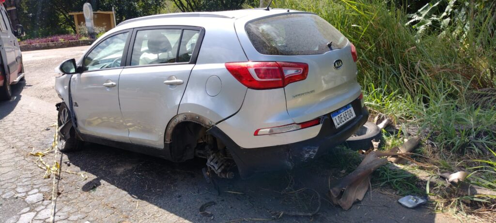 Na manhã desta quarta-feira (17), aconteceu um grave acidente no trevo de Faria Lemos envolvendo dois veículos, sendo um Kia Sportage prata e o outro um VW Fox branco. Segundo informações colhidas através da PMMG, ambos os veículos estavam seguindo sentido à cidade de Carangola, sendo que os condutores dos veículos acidentados são irmãos e de Porciúncula-RJ. A condutora do Sportage teria passado mal e colidido na traseira do veículo Fox que seu irmão conduzia à sua frente, tendo o veículo Fox perdido o controle e chocado fortemente contra uma palmeira, próximo ao Laticínio Cortez. O condutor do Fox veio a óbito no local, ficando preso às ferragens, e a condutora do Sportage foi socorrida pelo SAMU à Casa de Caridade de Carangola. A PMMG atendeu a ocorrência através da guarnição PM de Tombos, guarnição PM de Faria Lemos e da guarnição da Polícia Militar Rodoviária de Carangola, que assumiu a ocorrência, acionando o Corpo de Bombeiros para retirada da vítima fatal presa às ferragens e acionou a perícia da PCMG.