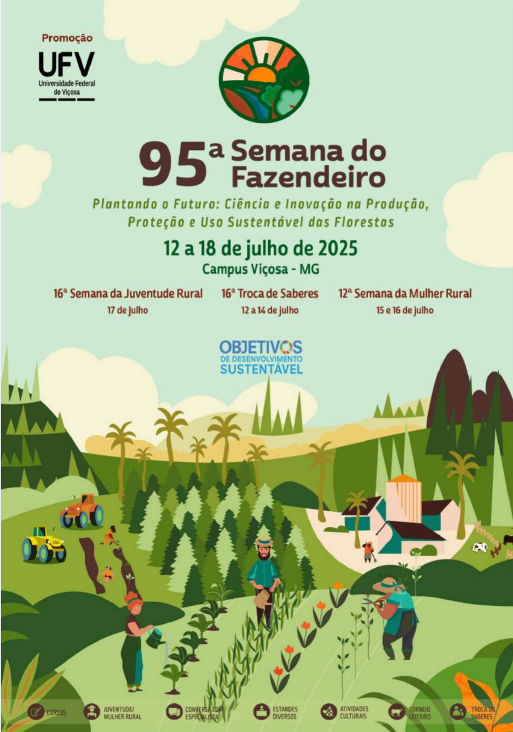 Os alunos e a professora Karina ainda deixaram um convite especial para a 95ª SEMANA DO FAZENDEIRO, que acontecerá no Campus da UFV em Viçosa-MG, com a temática “Plantando o futuro: Ciência e inovação na produção, Proteção e Uso Sustentável das Florestas”, uma oportunidade ímpar de ampliar os conhecimentos, conforme cartaz abaixo: