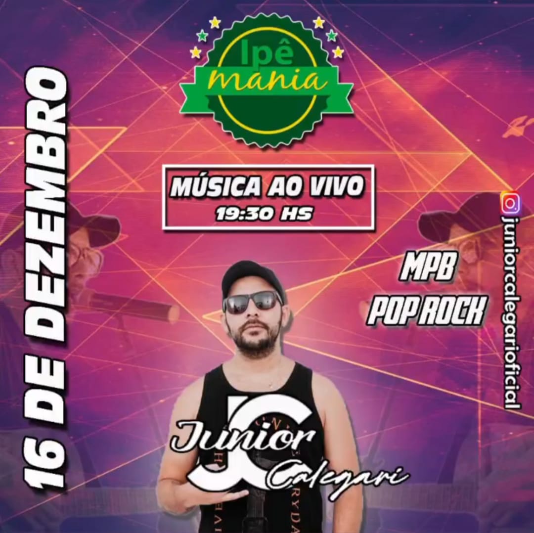 O IPÊ MANIA, o point mais animado e mais agradável da cidade traz a você Música ao Vivo de qualidade nesta sexta-feira (16), com Júnior Calegari, a partir das 19:30h.