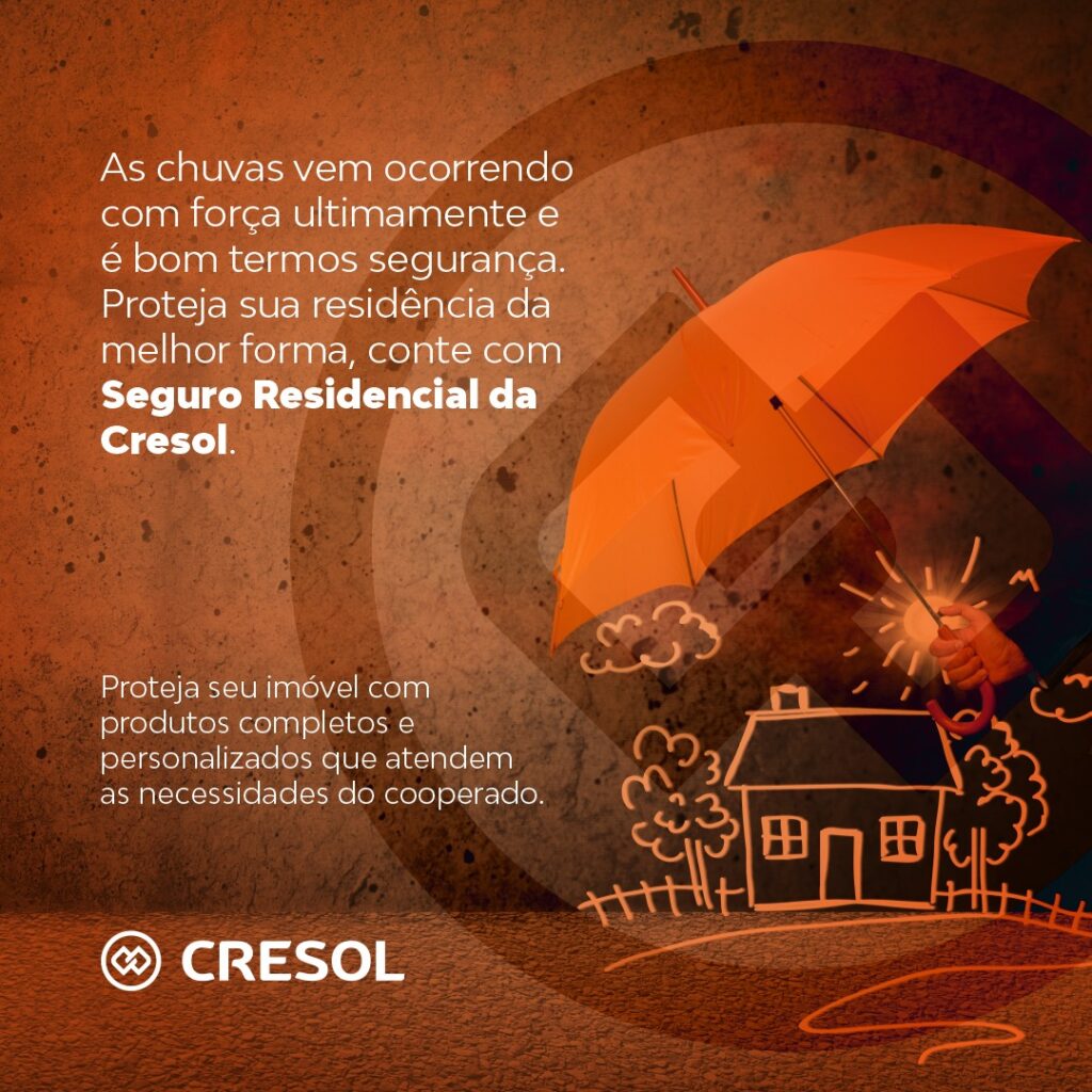 JÁ GARANTIU O SEU SEGURO RESIDENCIAL NA CRESOL? PROCURE AGÊNCIA MAIS PRÓXIMA DE VOCÊ E GARANTA SEGURANÇA DE SUA CASA DURANTE ESSE PERÍODO CHUVOSO