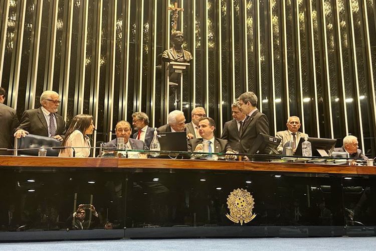Senador Lael Varela ao lado do presidente do Senado, Rodrigo Pachego e do Senador, Randolfe Rodrigues