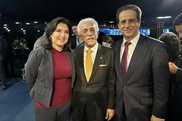 Lael Varela ao lado da Ministra do Planejamento, Simone Tebet e de seu filho, Luciano Varella