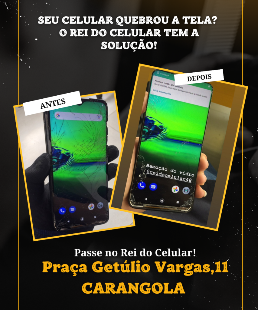 Seu celular quebrou a tela? Passe no Rei do Celular! O melhor serviço com o melhor preço da região:
