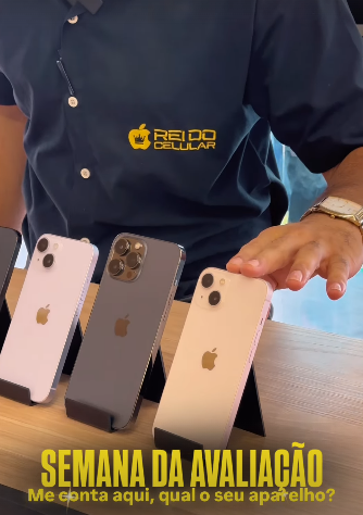 Outra novidade para compartilhar, é que apenas nessa semana, está acontecendo a “SEMANA DA AVALIAÇÃO”, onde você cliente que tem interesse em trocar seu atual aparelho celular por um novo, pode estar indo até a central do Rei do Celular para fazer um avaliar seu aparelho, negociar valores para abater no valor de um novo Smartphone ou Iphone. Já pensou em entrar na loja com um celular velho e sair com um “novinho em folha”?