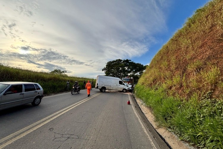 A van transportava vassouras de Belo Horizonte para Muriaé. Devido ao impacto a carga se deslocou para a cabine do motorista.